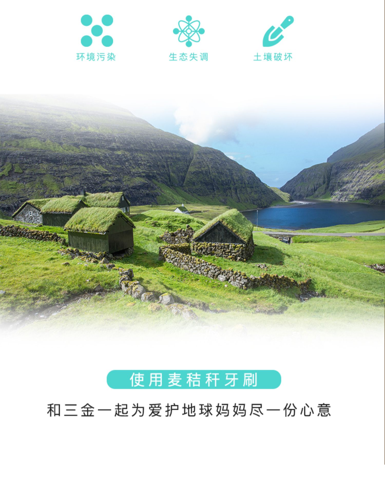 三金52年品牌历史,专注口腔健康,竹炭软毛,麦秸秆牙刷,呵护牙龈,温和的洁净力