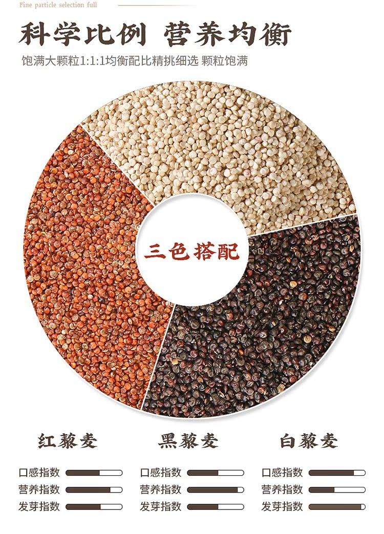红白黑三色藜麦米,营养,精挑细选,颗粒饱满,色泽鲜亮,软糯香浓,易消化,美味不可辜负~