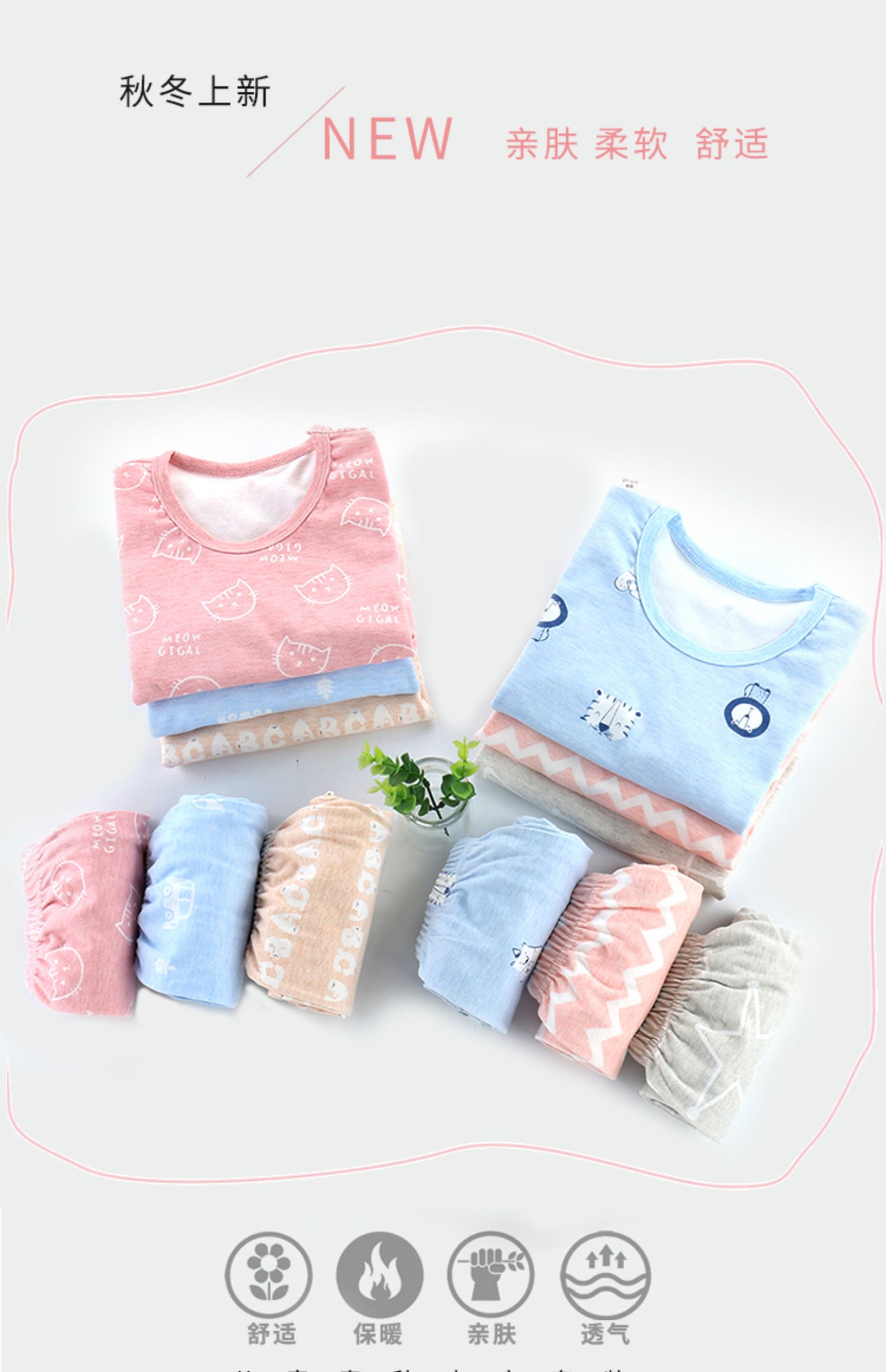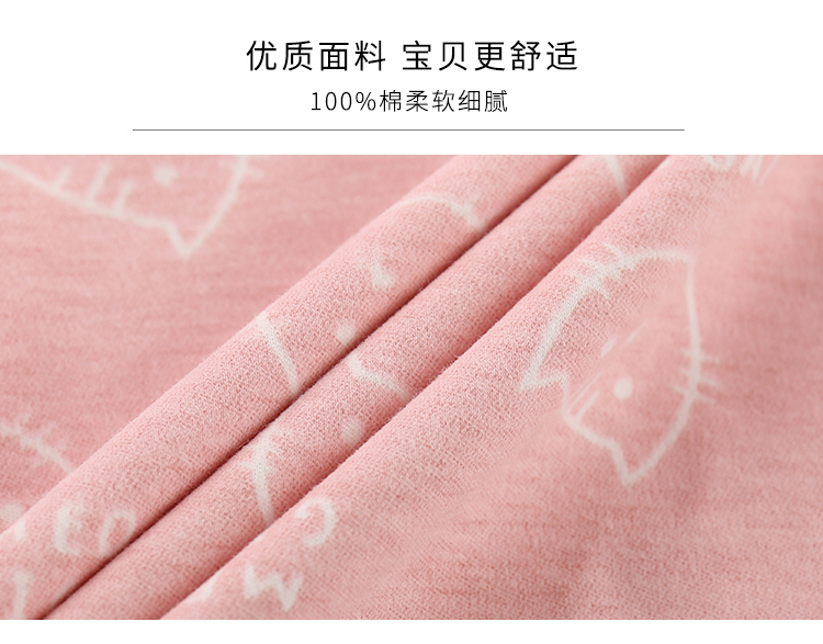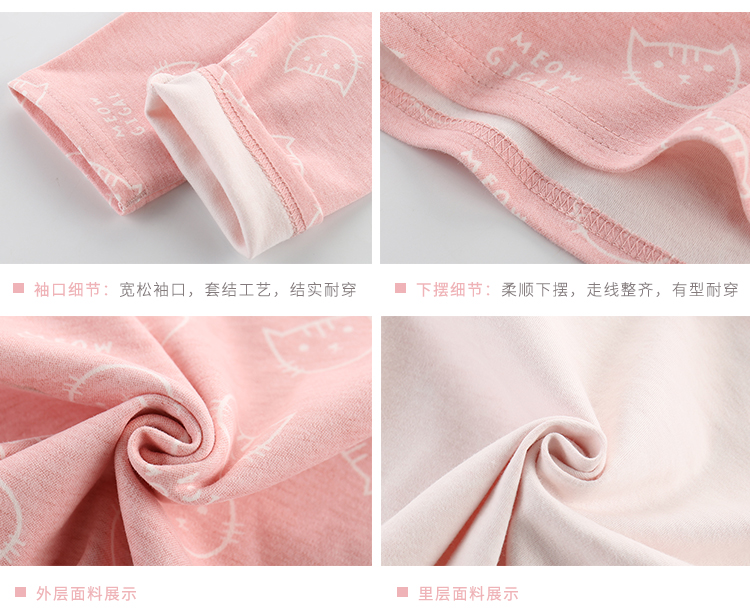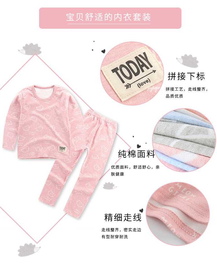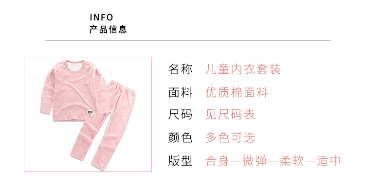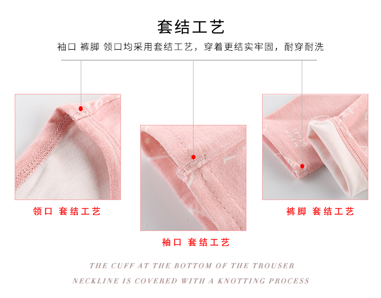 精选40支全棉面料,手感特别柔软舒适,宝宝穿上特别舒服;领口、袖口、裤腿都采用套结工艺,结实牢固,耐穿耐洗;一款穿了都不想再脱的内衣,还等什么呢,速速抢购。