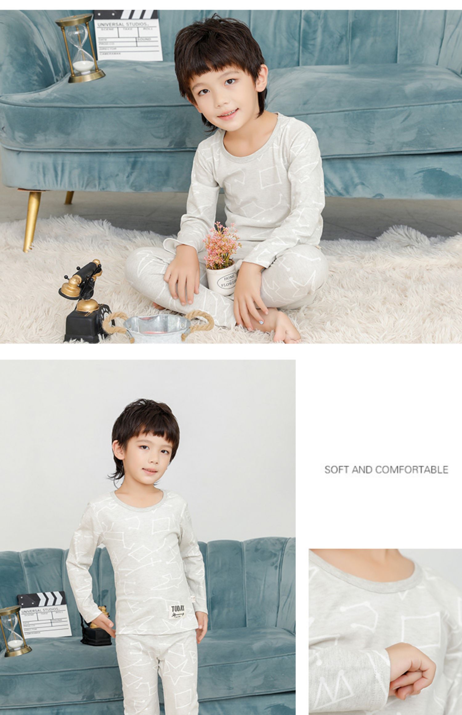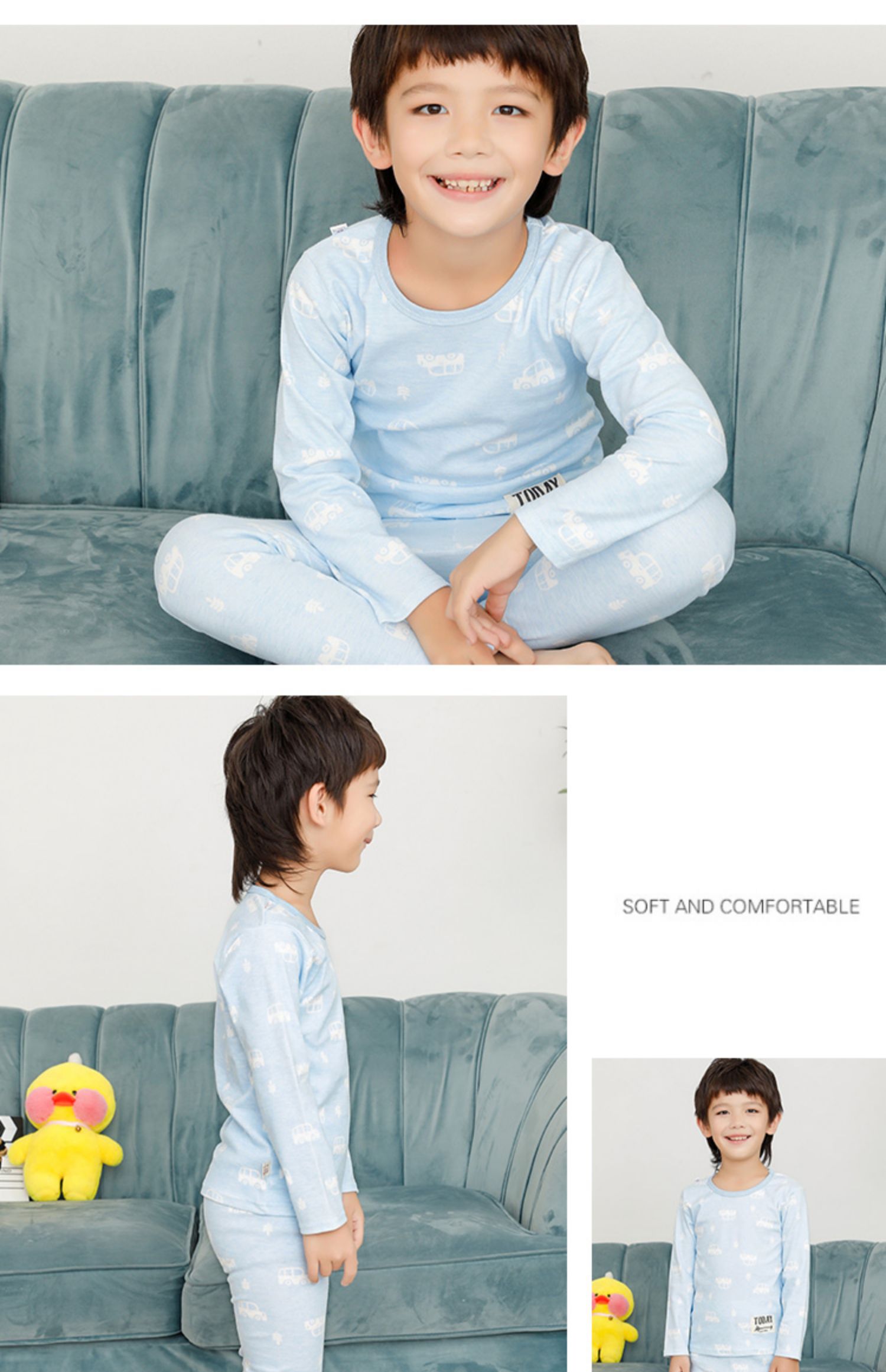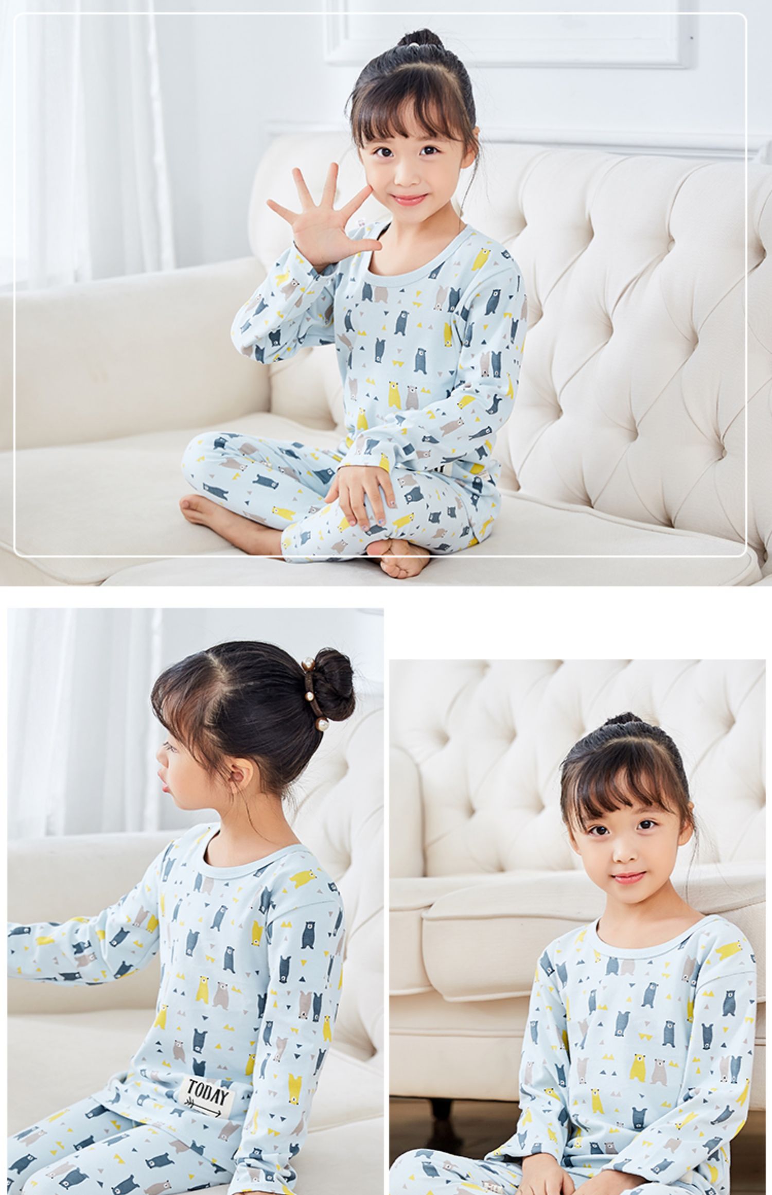 精选40支全棉面料,手感特别柔软舒适,宝宝穿上特别舒服;领口、袖口、裤腿都采用套结工艺,结实牢固,耐穿耐洗;一款穿了都不想再脱的内衣,还等什么呢,速速抢购。
