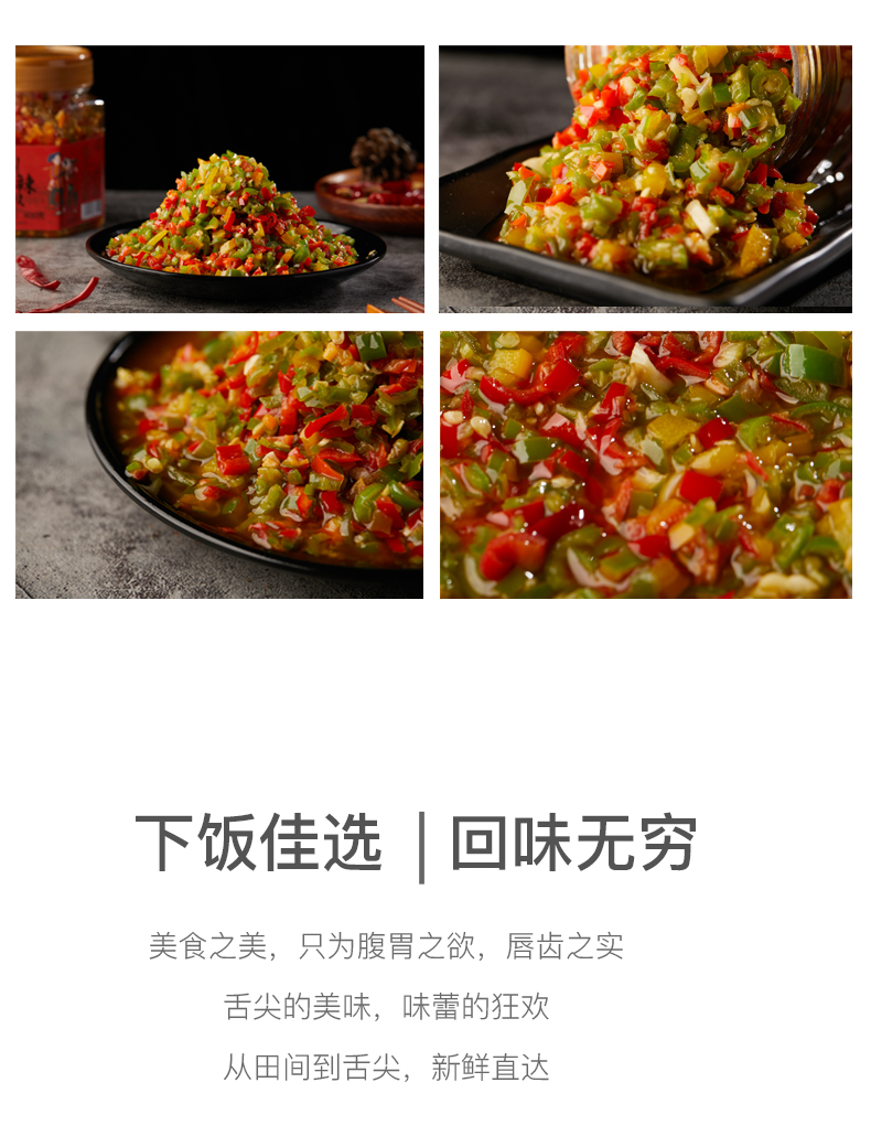 【拍一瓶发3瓶】!保质期全部新鲜!高山鲜椒,古法酿制,即食美味,鲜辣爽口,回味无穷,健康不含油,色泽诱人,辣香扑鼻,多种食法,吃辣好选择,无脂低卡更健康,赠送运费险