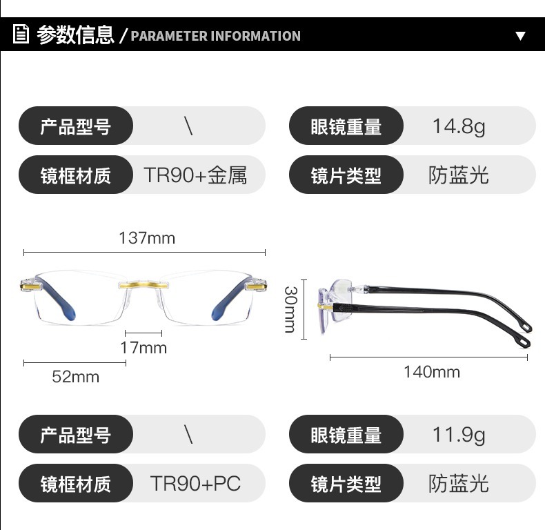 【买一送一,送眼镜布】一副显”时尚年轻“的防蓝光老花镜,TR90记忆材质,佩戴无痕,适合各种脸型~14.8g超清重量,长时间佩戴不累,送爸妈送长辈,贴心送礼佳选!
