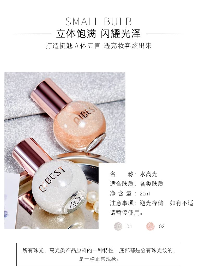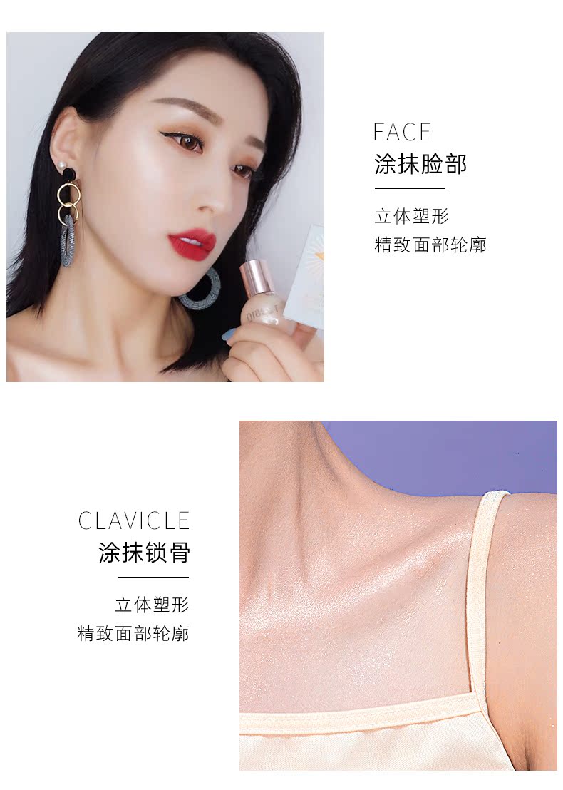 【第2件10元】水润闪亮高光液,滚珠式设计,易上手,顺滑速干,比固体高光更细腻,不卡粉服帖,打造挺翘立体五官,防水防汗不易脱妆!