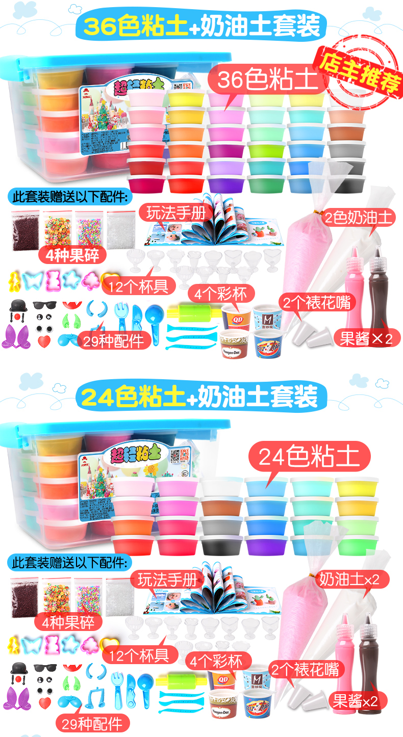 【送刀叉工具】环保无毒,安全无异味,色彩鲜艳不油腻,24色带收纳盒,想捏什么捏什么,充分锻炼宝宝的动手能力~