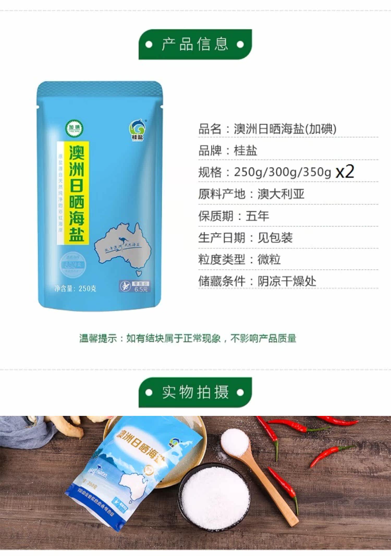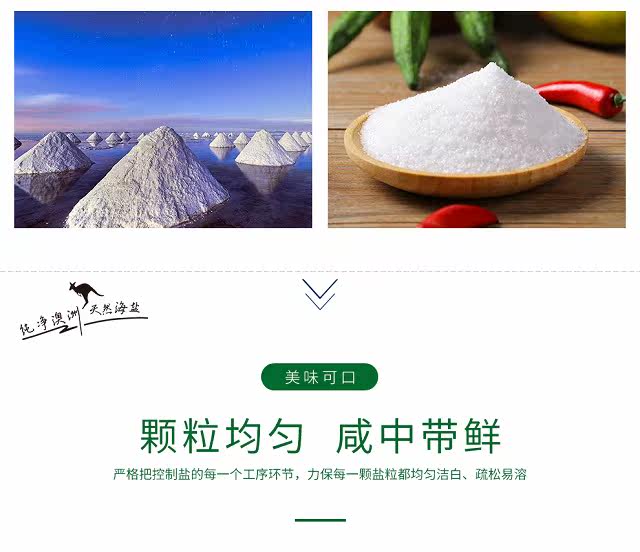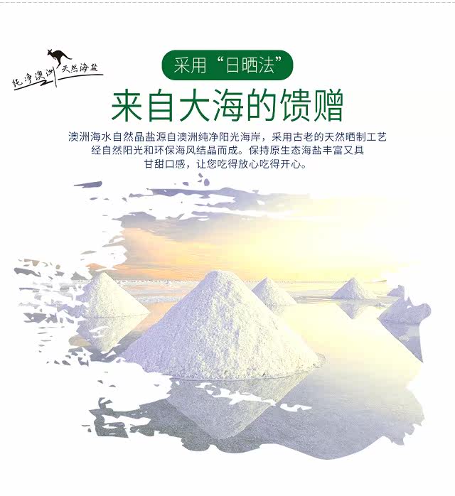 【超值6袋装】源自澳洲纯净阳光海岸,采用传统日晒,层层技术把关精制而成,颗粒均匀,迅速溶解,富含钾/碘/钠等多种营养元素,居家必备!