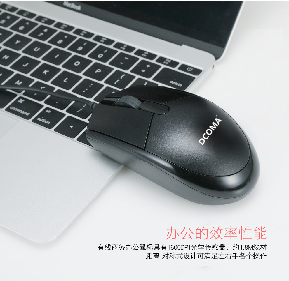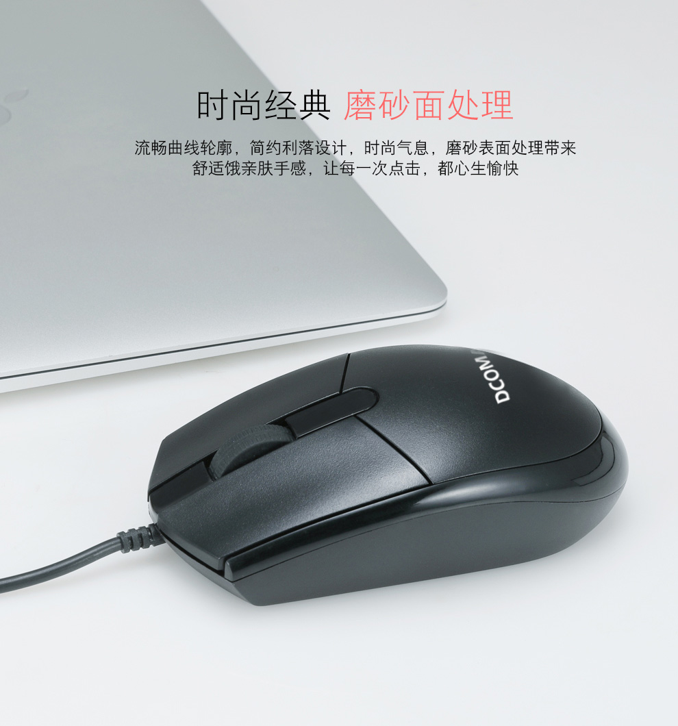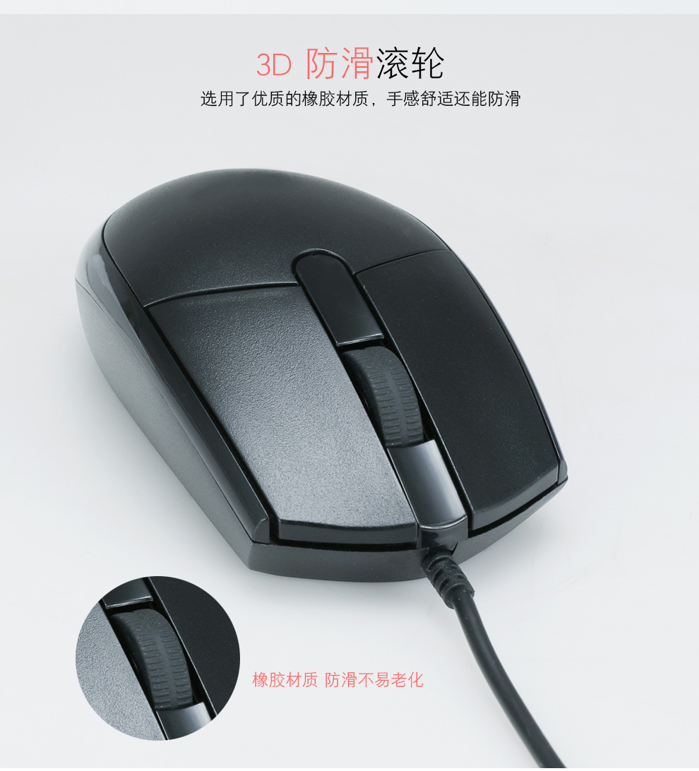 人体工学设计,手感舒适,仿肤质涂层,防滑防汗,静音按键,灵敏度很高,回弹性好,即插即用,兼容性强,有黑白2色可选,游戏必备