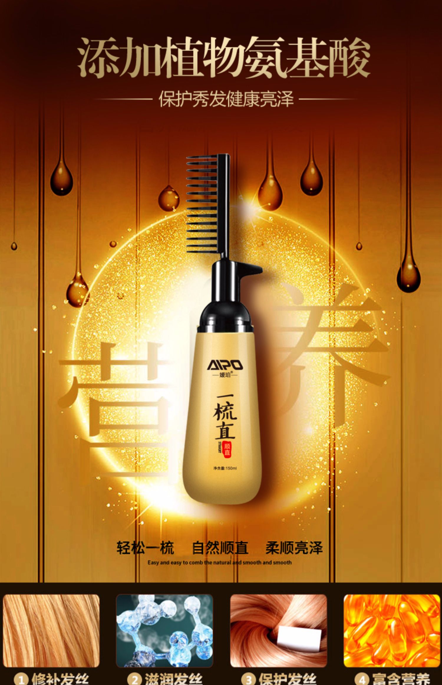 嫒珀【一梳直-免拉】直发膏