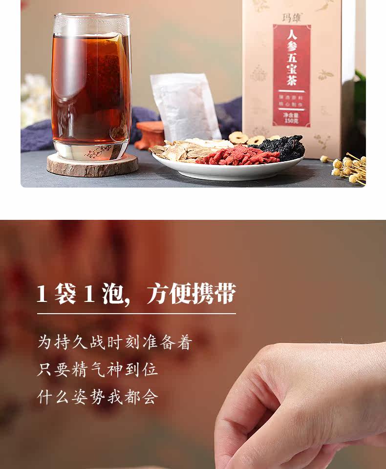 【拍2发3送鹿茸+保温杯】参黄精五宝茶,气血枣茶优选食材,科学配比,口感香甜,营养丰富,每天一杯,享受青春好气色,男士定制,补肾养气,让我们做更强的男人,绽放男性魅力~