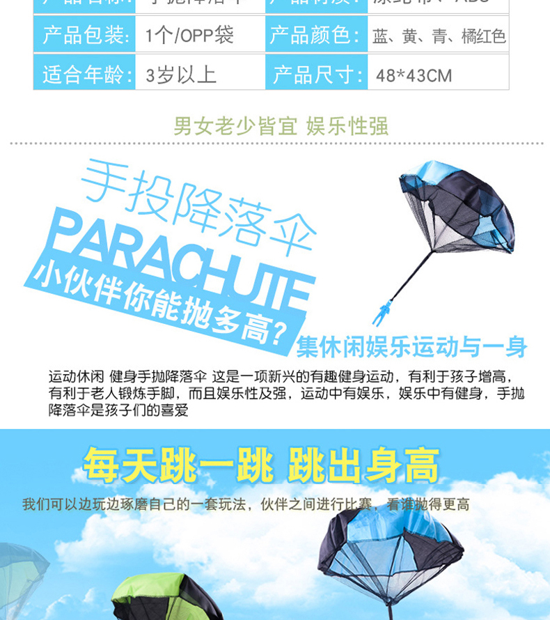 户外降落伞让孩子益智的玩具~不仅是玩具,还能开发儿童脑力,激发孩子想象力!无甲醛健康材质,圆润光滑不伤手外形!越玩越聪明!
