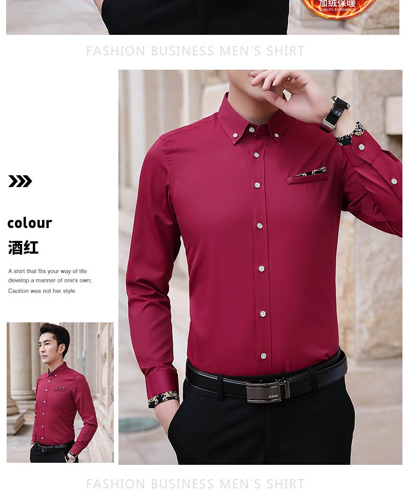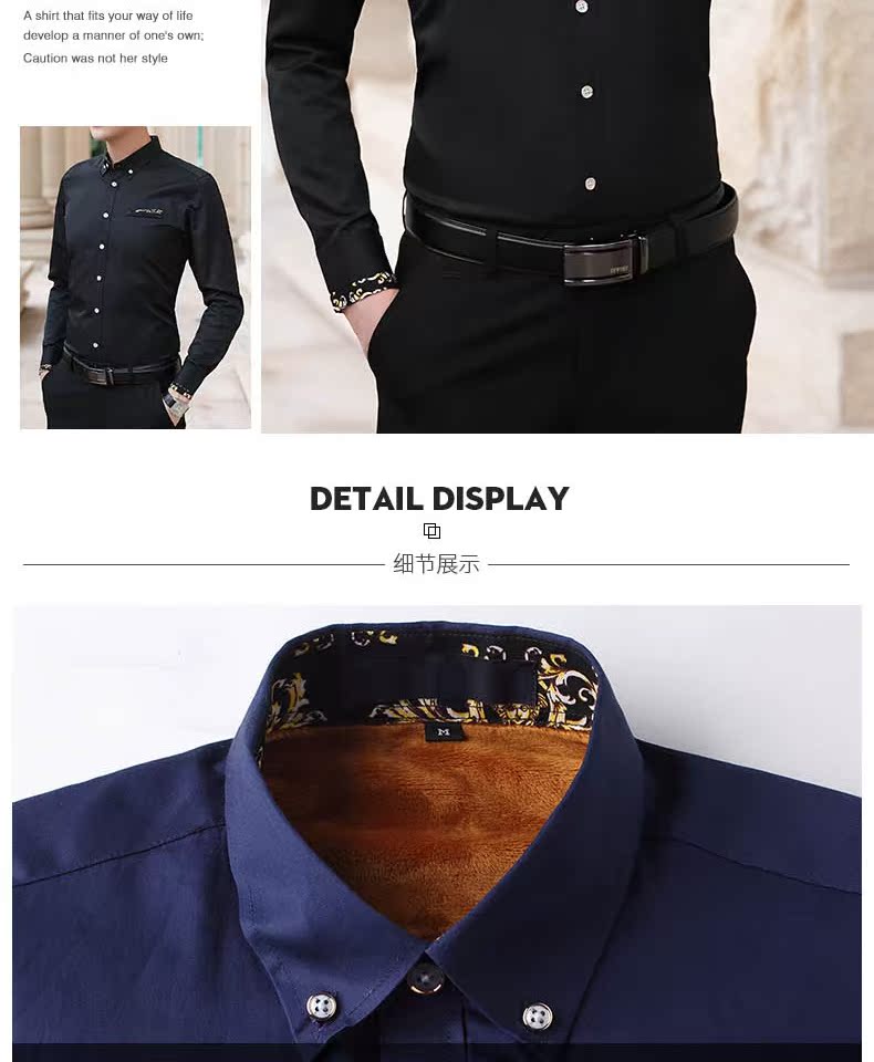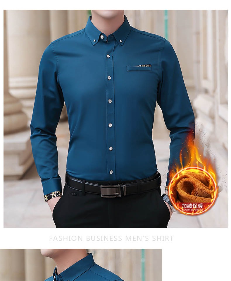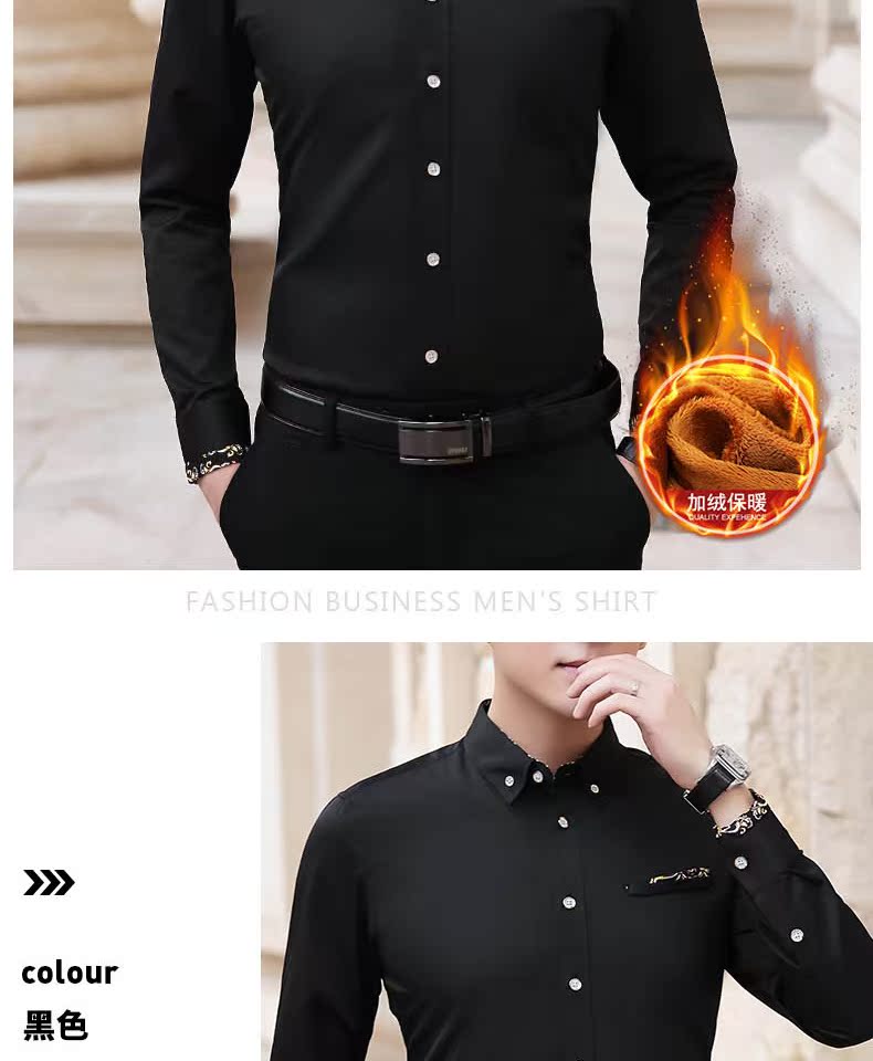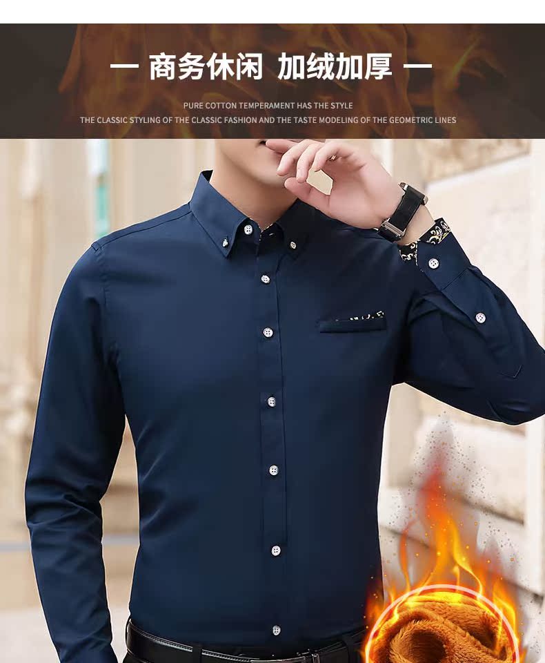 保暖衬衫男加绒加厚韩版修身商务休闲