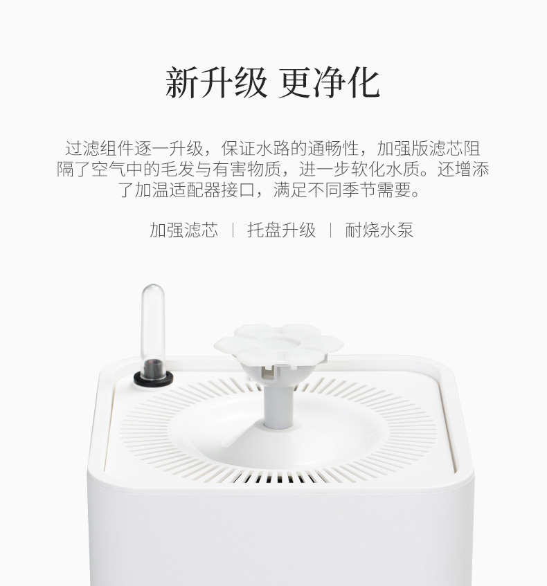 一年内出现问题免费换新,2L超大容量,过滤组件全新升级,循环净化,严密过滤,安静运行,不扰清净。