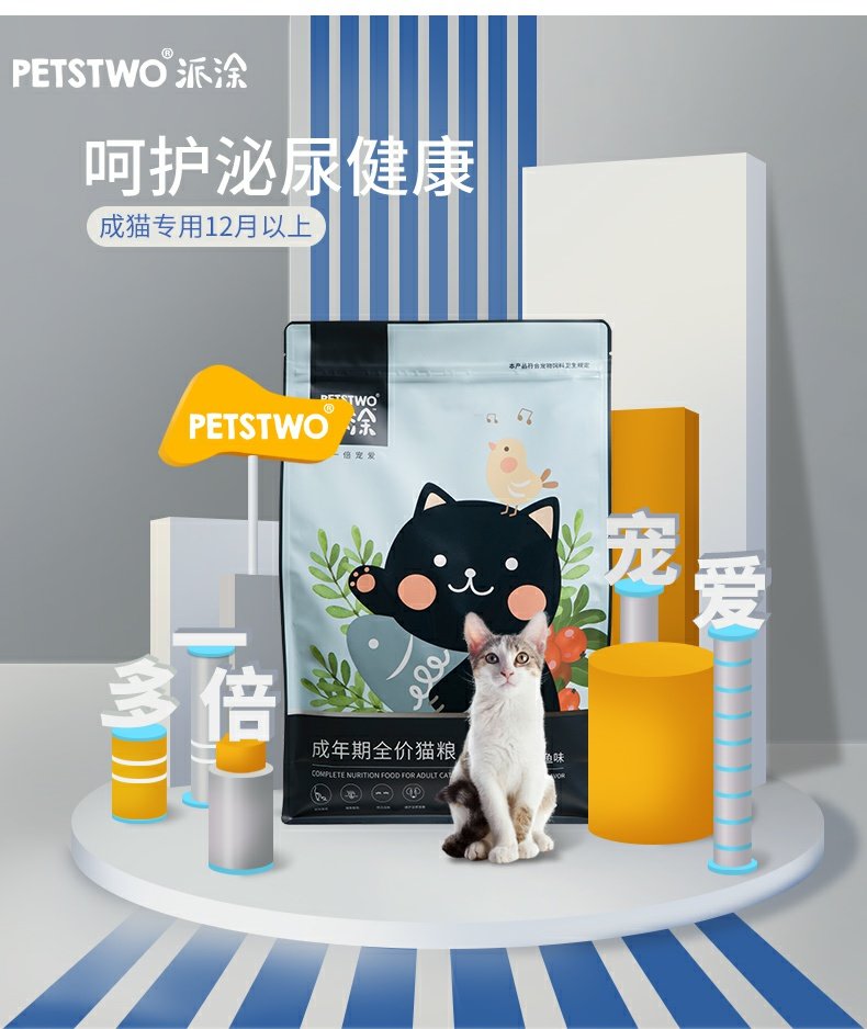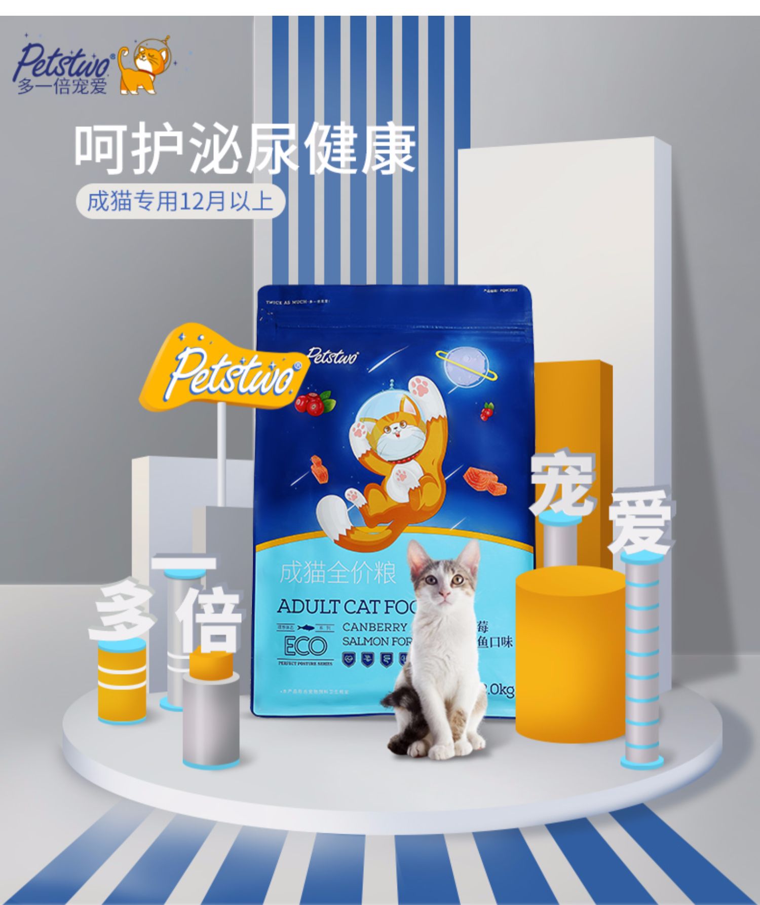 【petstwo旗舰店】全价成猫粮,添加车前子、蔓越莓,催吐毛球,呵护泌尿系统,鱼肉味,猫咪爱吃。宠物用品。