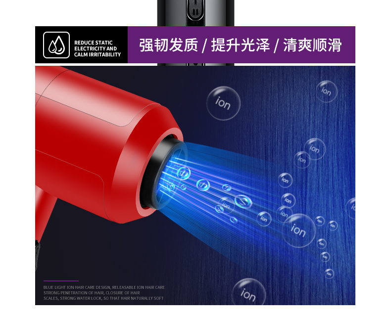 【抖音网红同款】正品保证,3C安全认证,大风量,热量均匀分布保持恒温,速干造型!人体学设计,冷热风不伤发,5挡调节,水润负离子养发技术,让秀发柔顺有光泽!【赠运费险】