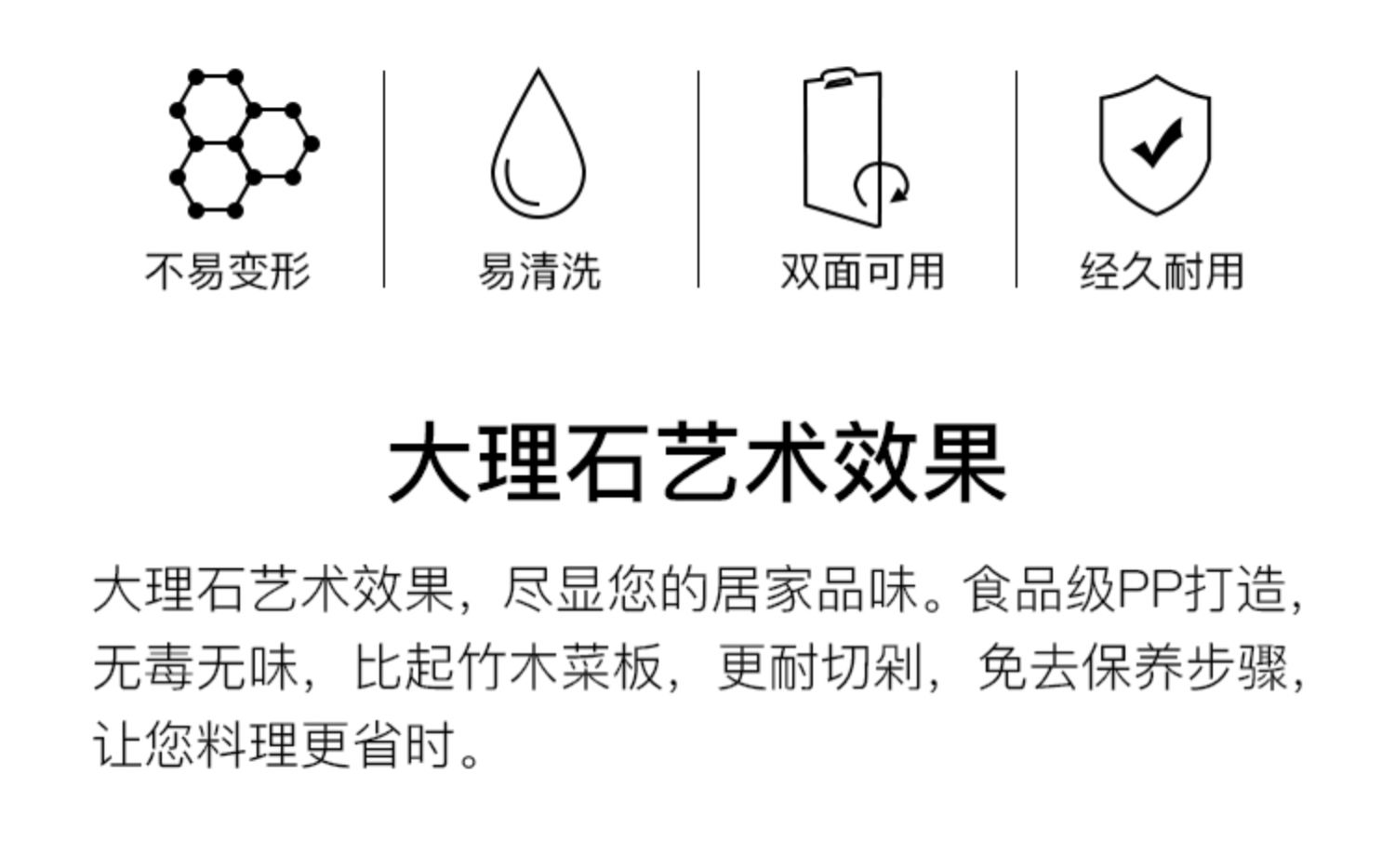 【不会发霉的菜板】旗舰店石砧板,轻巧轻薄,防滑双面设计,荤素各一面,食品级PP材质,板面不粘污,一冲就干净!让每一次的烹饪都安心健康!