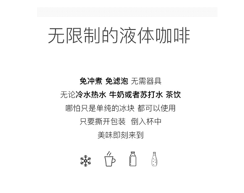 日本进口不加防腐剂,还是一款可以DIY的胶囊浓缩咖啡液,免冲煮免滤泡,无论冷水热水、牛奶、苏打水、茶饮甚至是冰块,倒入杯中美味即刻来到