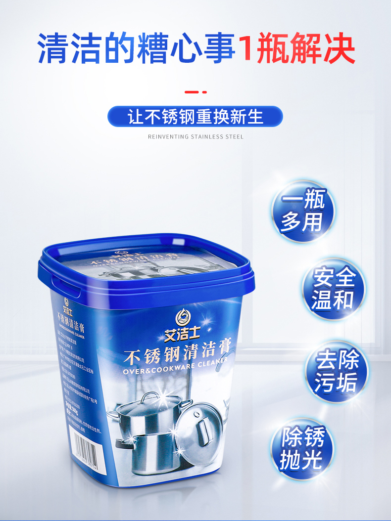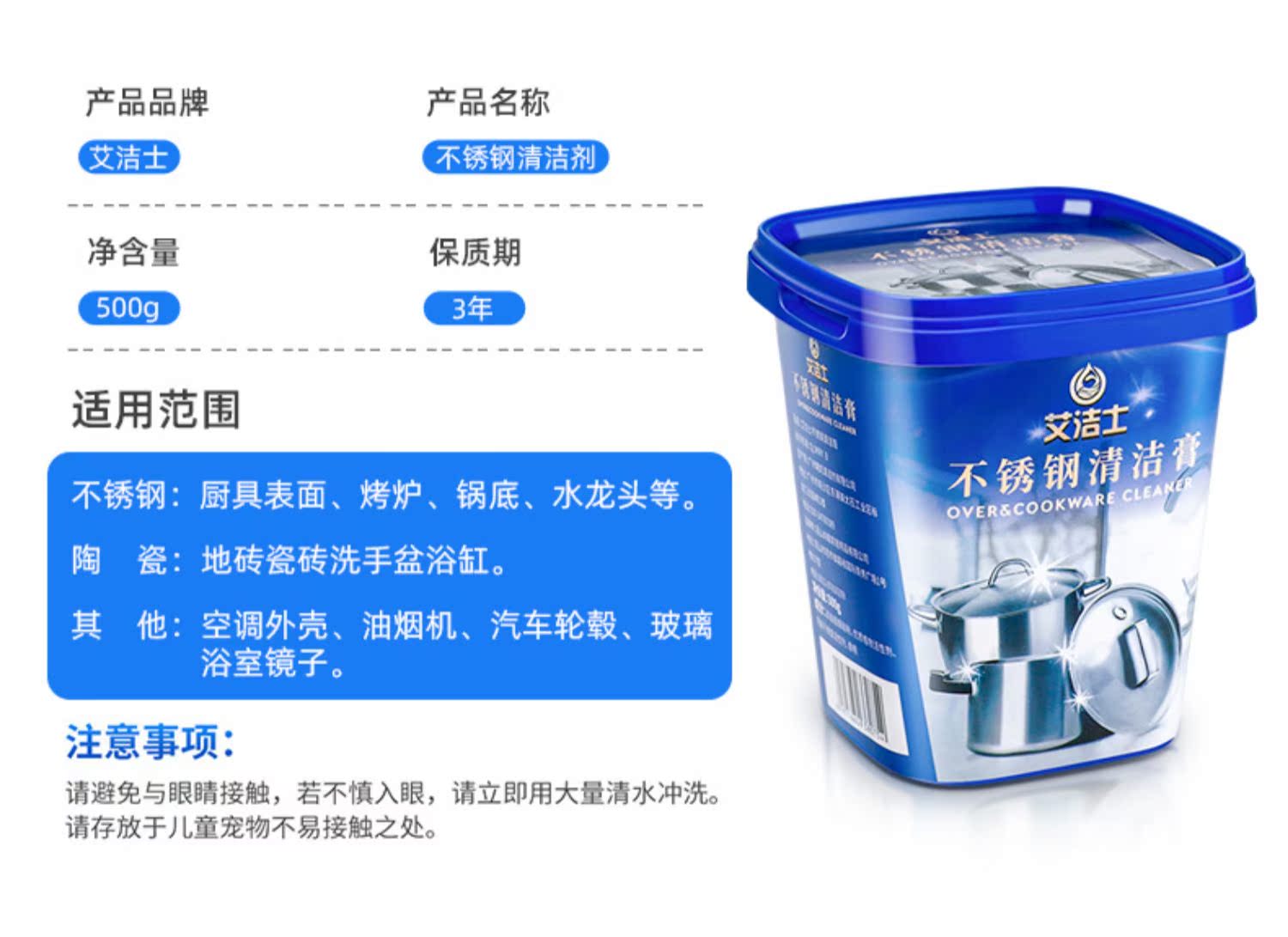 【500ml装】不锈钢强力去污膏,超大装,一瓶更比5瓶强,适用于去除所有顽固污渍,天然植物萃取,不伤手,快速去污,一擦就亮,专业处理各种厨房污渍。【拍一瓶送两个魔力擦、拍两瓶发四瓶还送魔力擦】