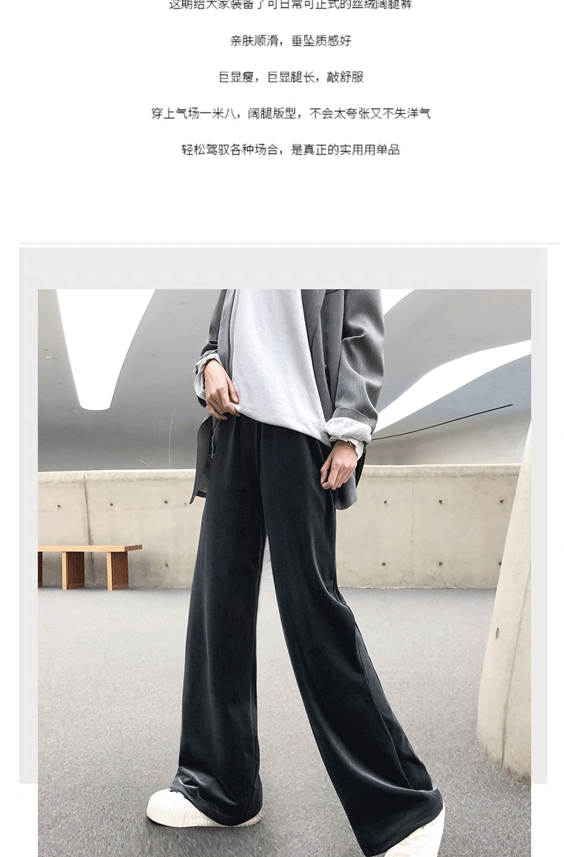 【赠运费险】80-150斤可穿,今年大火的金丝绒阔腿裤,不起球、不掉毛!直筒宽松裤腿有垂感,裤面不起皱,不变形!超级显腿直,巨显瘦,实力遮肉!轻松穿出高瘦美!