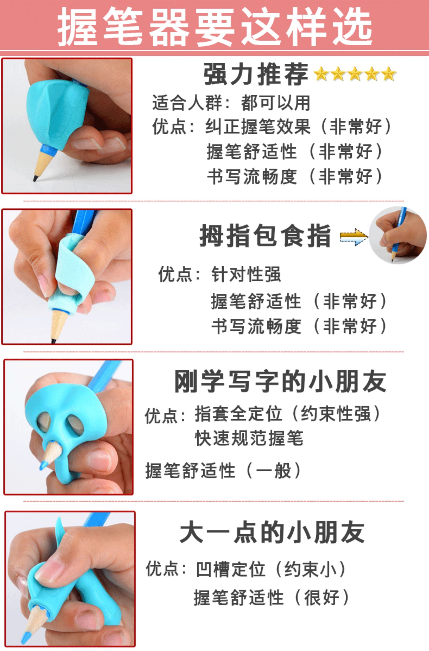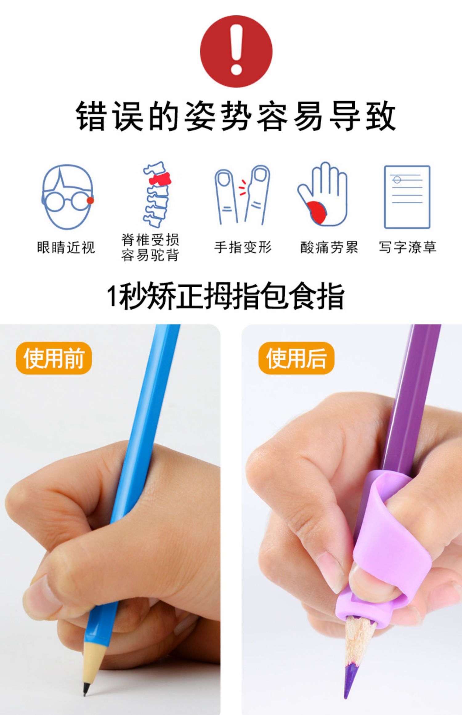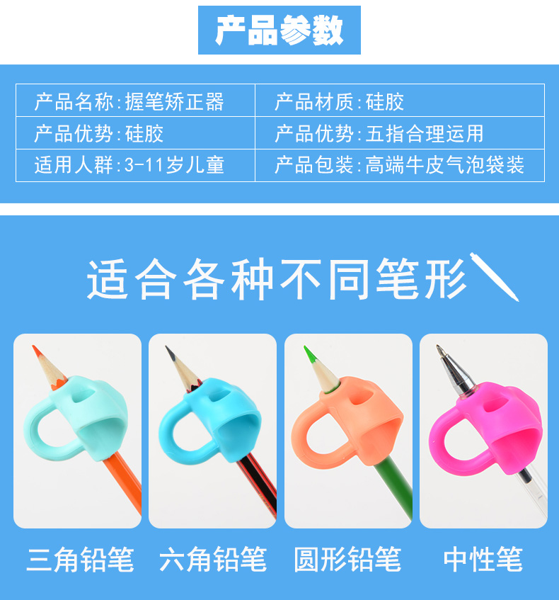 超值3个装!真硅胶材质~健康环保,学习要先写好字,握笔写字一秒定位,简单实用,材质软,镂空透气设计,让每个学生都能~标准握笔写好每一个字~考试全满分!