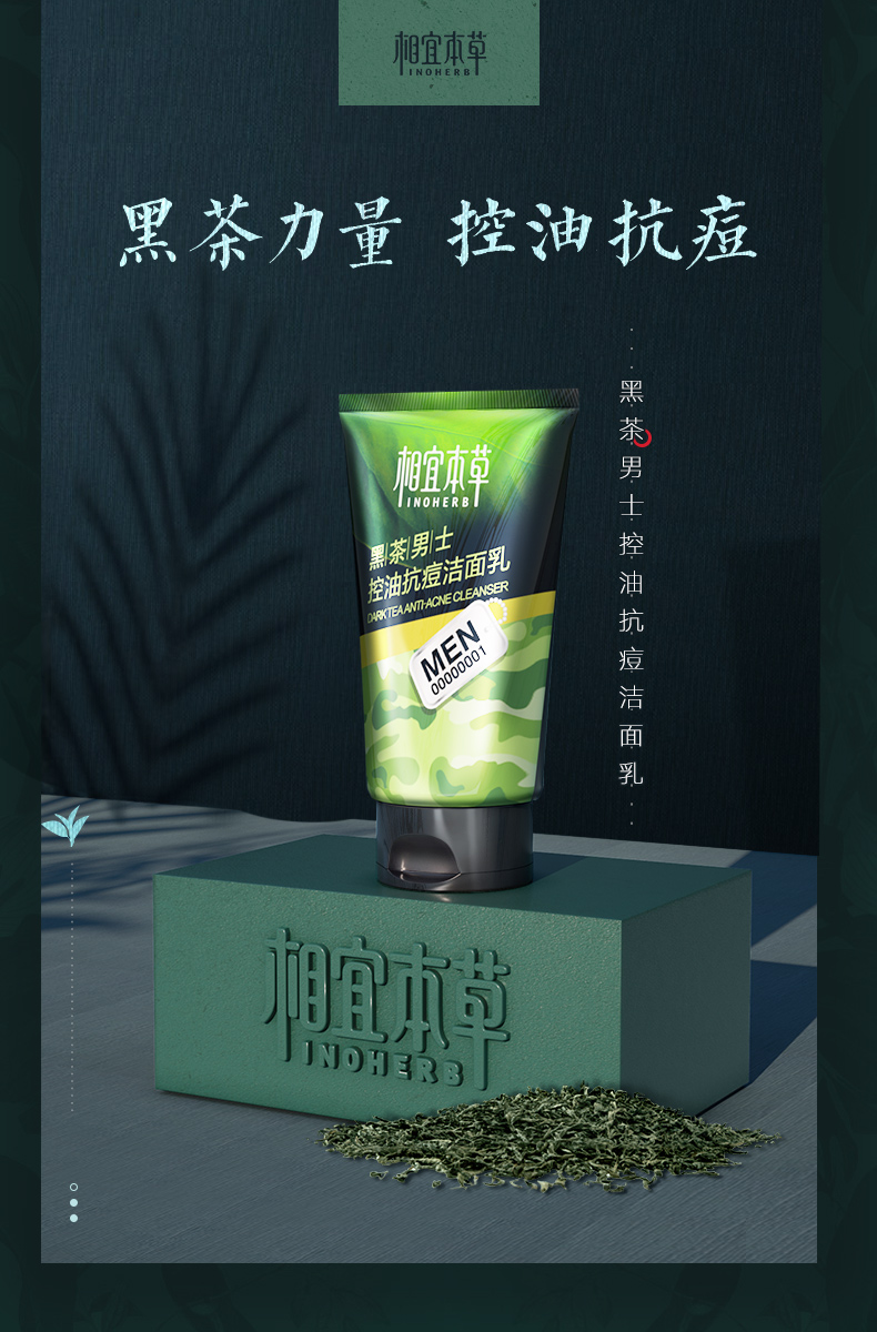 相宜本草男士黑茶祛痘洗面奶+送控油平衡露