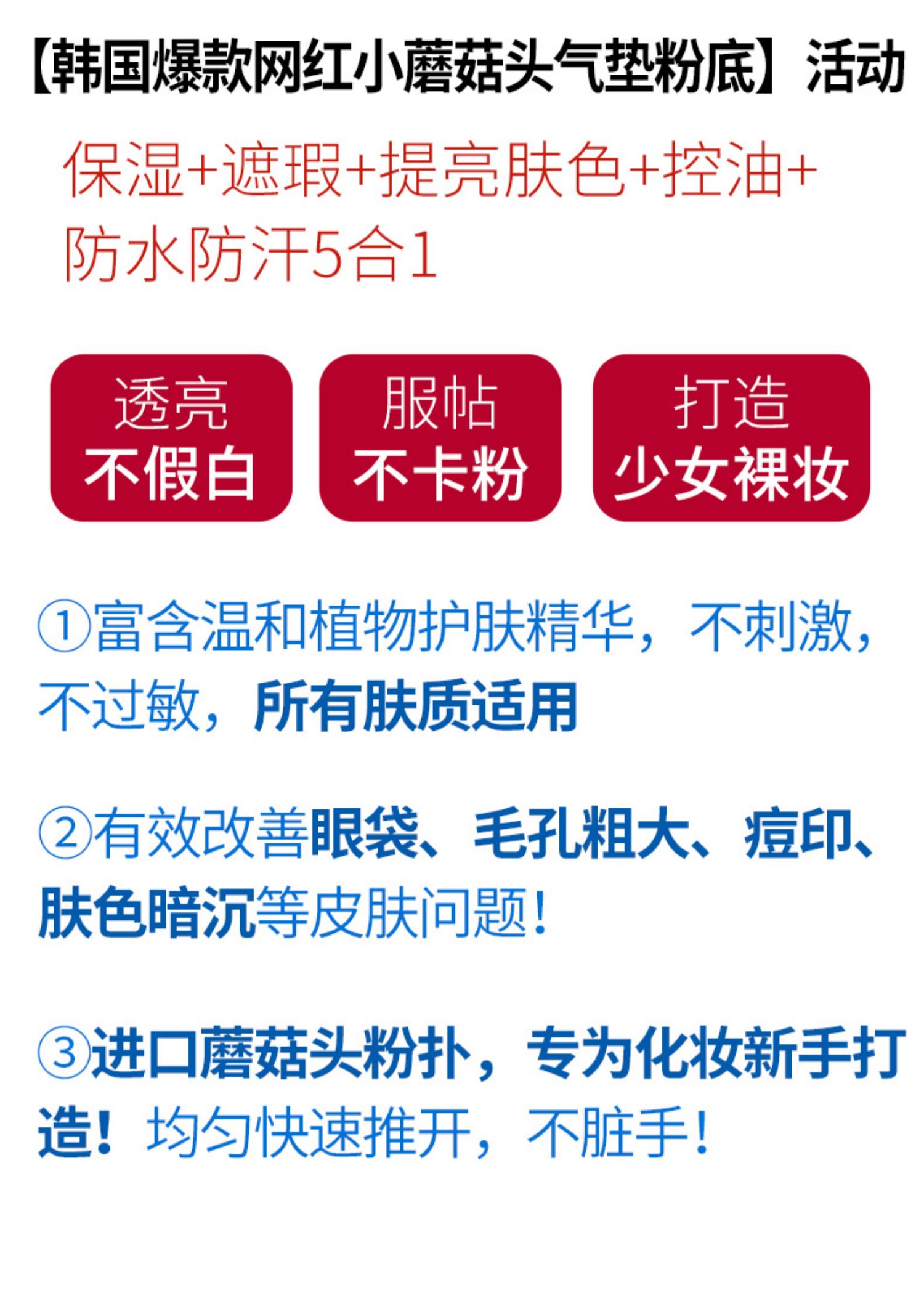 【百位美妆达人验货的断货王】送3片补水面膜!好评如潮,官方正品【美丽俏佳人力荐产品】韩蝉小蘑菇气垫,保湿提亮,持久遮瑕,细腻柔软,便捷贴肤,闭着眼也能轻松上妆,弹润轻薄,一步打造精致裸妆!