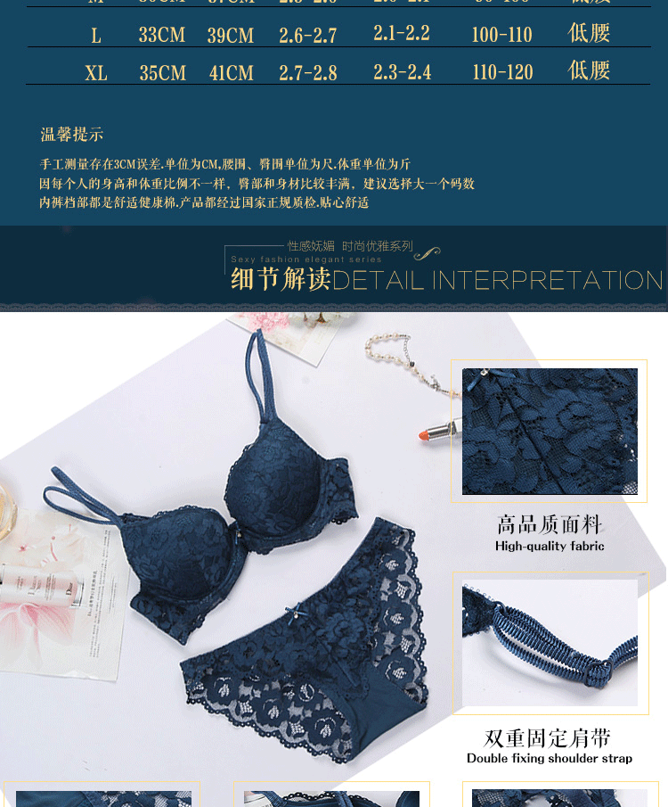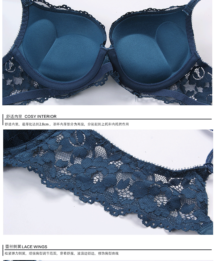 【高端品质】精致唯美的高档蕾丝面料,采用3D模杯设计,聚拢防下垂,显露迷人事业线。蕾丝罩杯,彰显高贵气质,大牌的做工,上等的质量。你从未体验过的高档蕾丝!不穿永远不知道自己有多性感迷人!