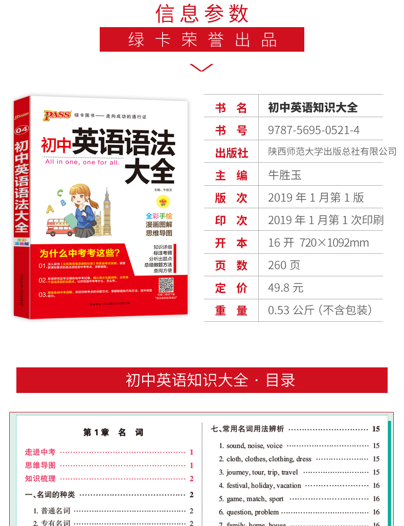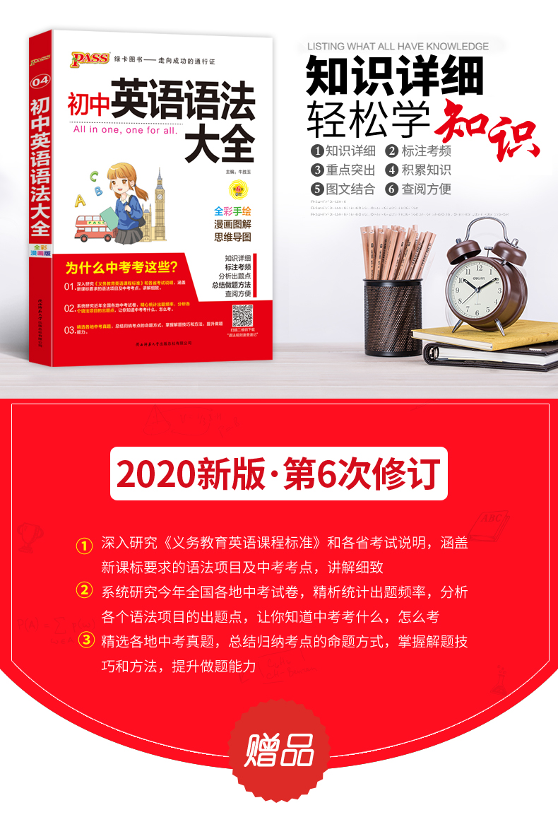 pass绿卡图书,20年全新第6次修订全彩版,初中英语语法大全,七八九年级中考词汇全解专项训练题手册,初一至初二初三辅导书复习资料,真题必刷题知识点全练专练,备考必备用书【买一赠三】限时超值仅需9.8