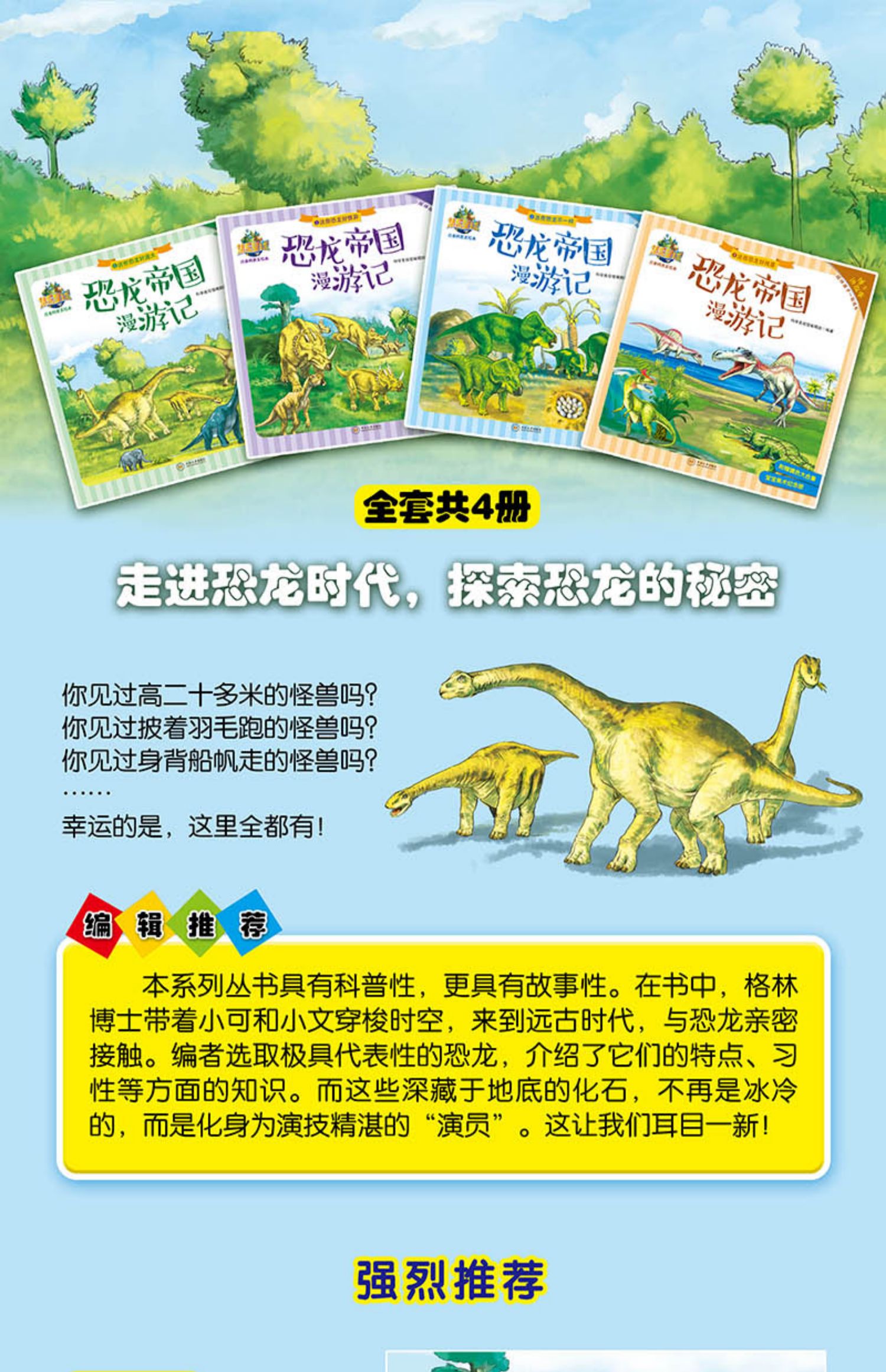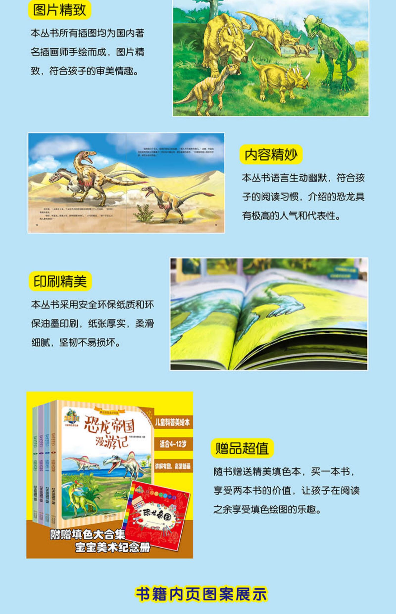 儿童恐龙世界百科全书,少儿科普绘本,共4本,铜版纸高清印刷,插图精美,大豆油墨印刷,安全环保无异味,大版面场景设计,让孩子阅读身临其境,宝宝睡前故事书,宝妈必备幼儿园亲子读物,赠恐龙涂色画!