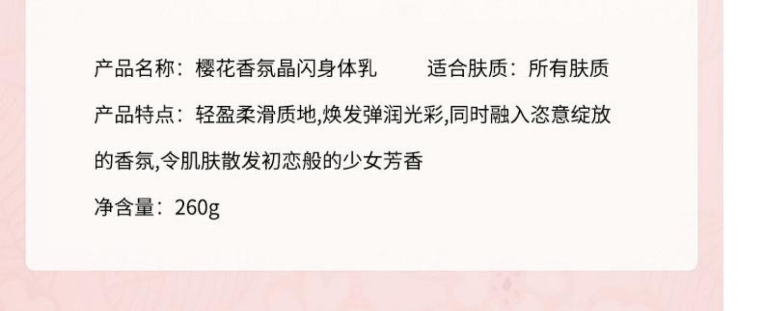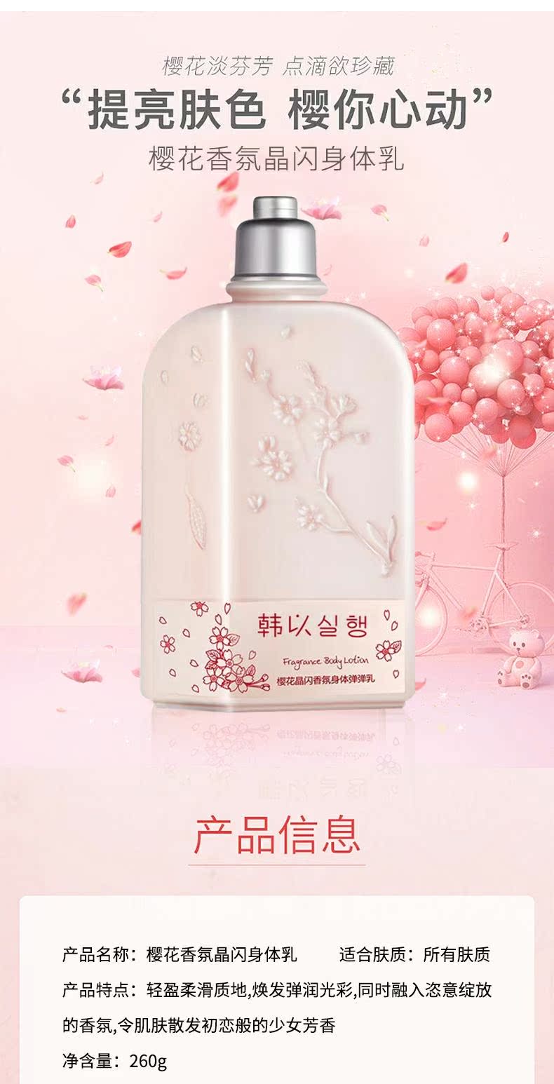 韩以学生樱花身体乳霜补水保湿滋润秋冬持久留香体女士润肤露学生,香体保湿,滋润,补水,水润规格260ml