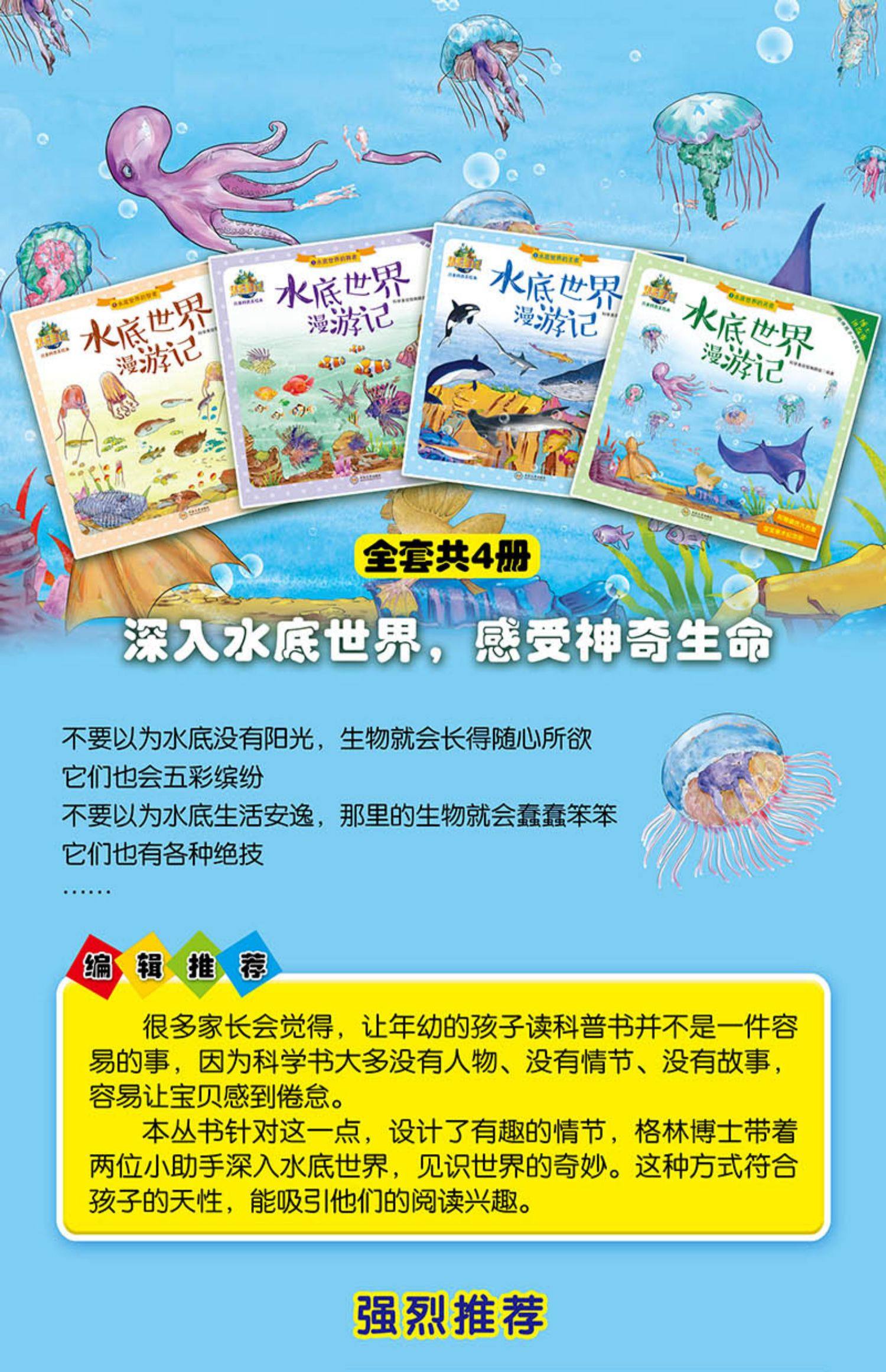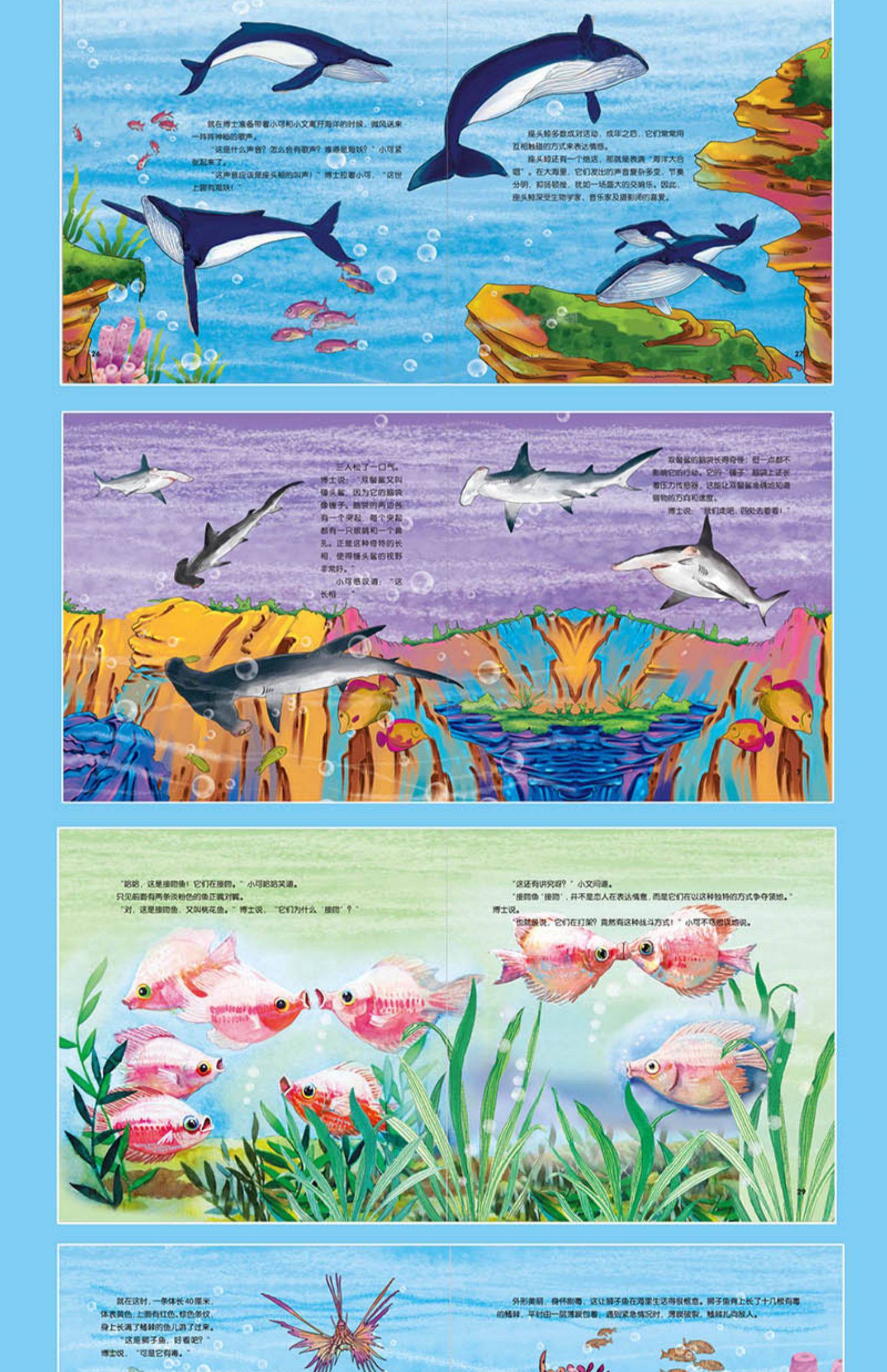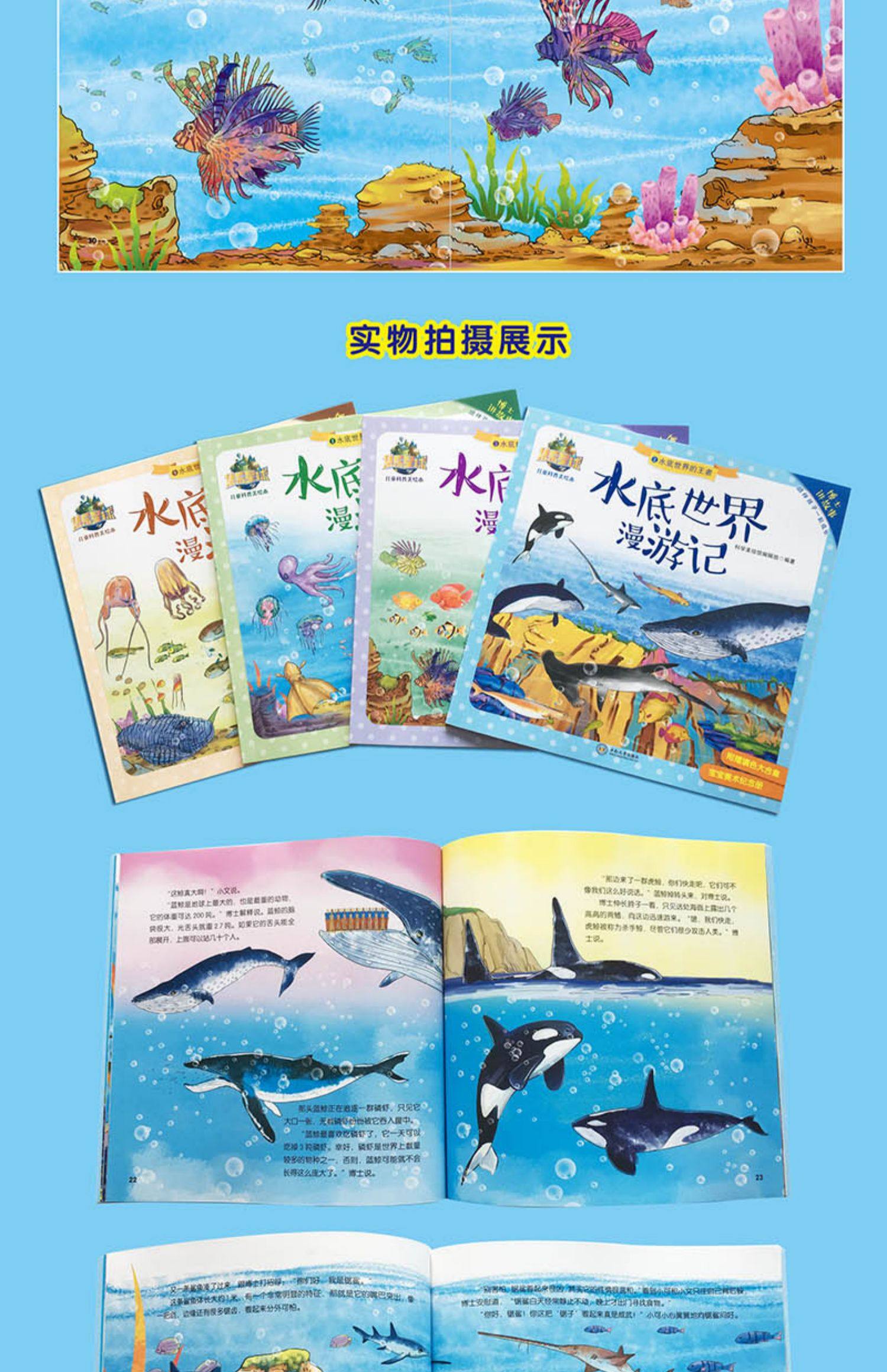 儿童百科全书,少儿科普绘本,揭秘海洋,海底世界漫游记,共4本,铜版纸印刷,插图精美,大豆油墨安全无异味,大版面场景设计,让孩子阅读身临其境,宝宝睡前故事书,宝妈必备幼儿园亲子读物,赠涂色画。