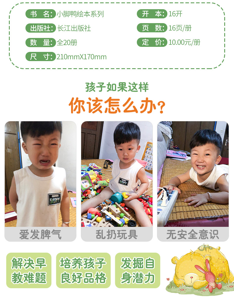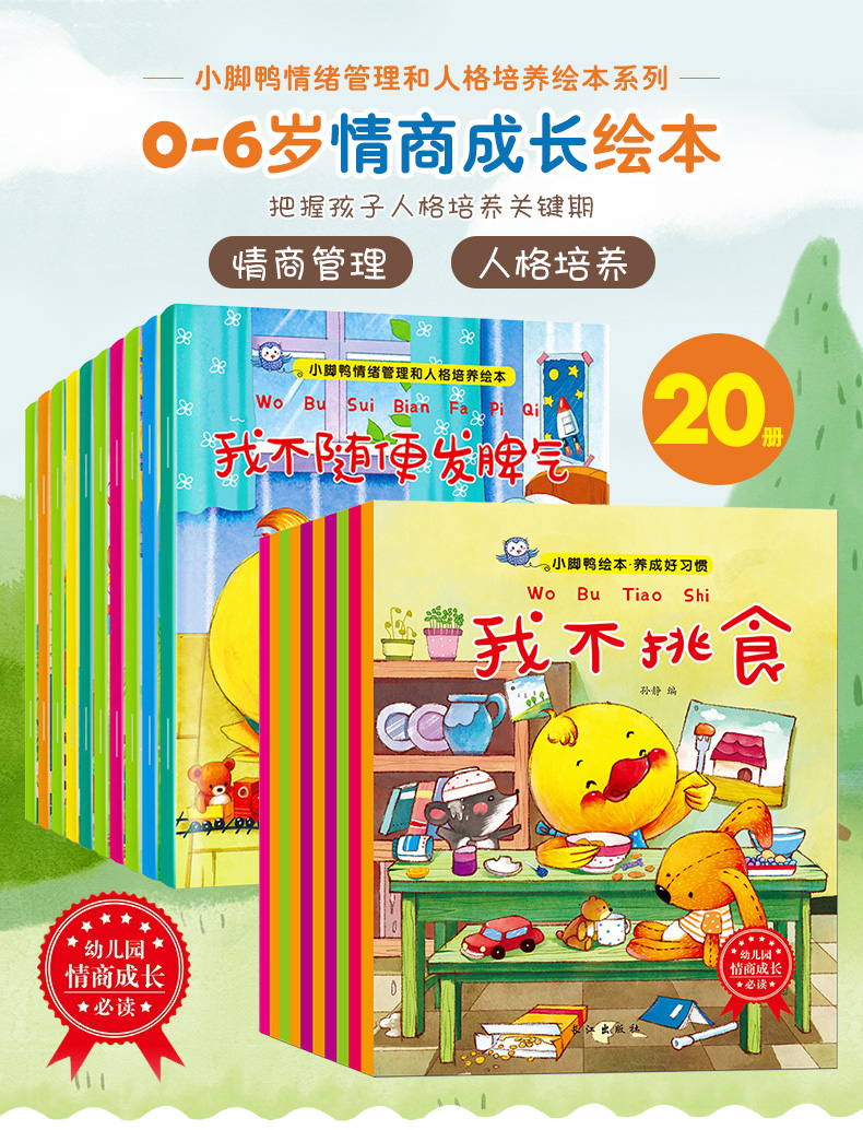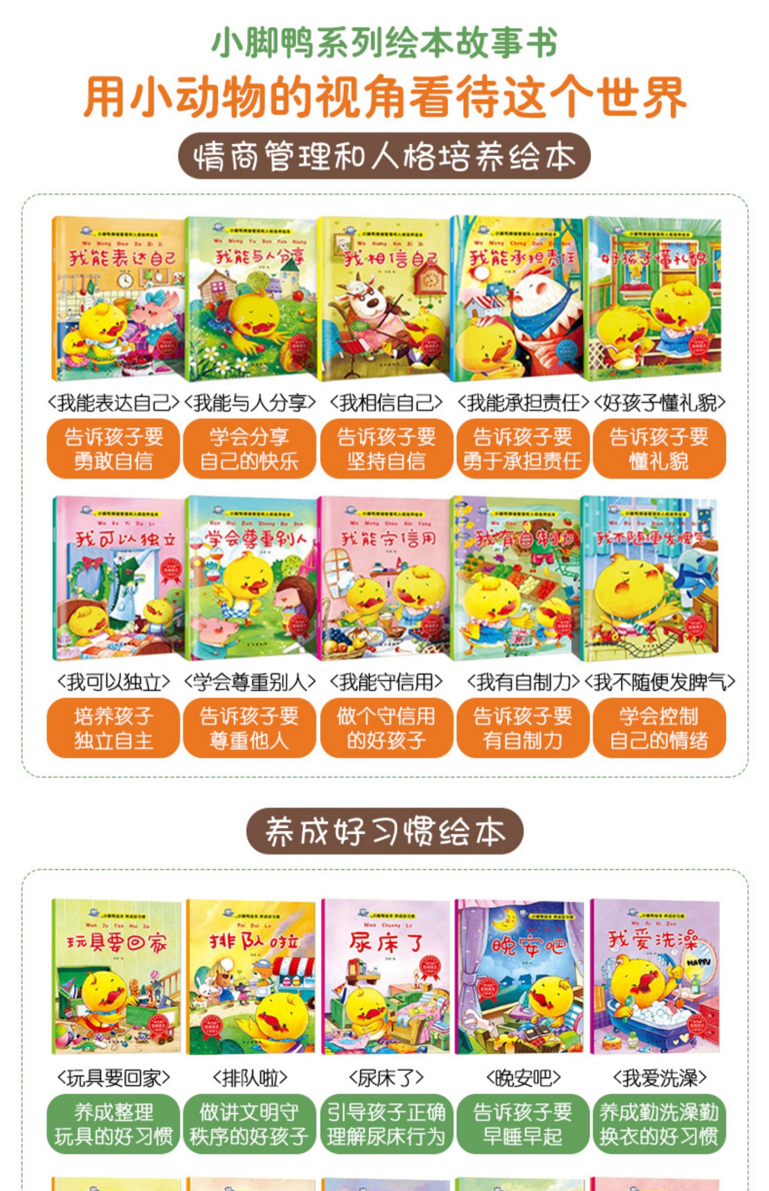小脚鸭儿童情商情绪管理,宝宝早教启蒙绘本,全20册,16开大版本,高清印刷,插图精美,专为0-9岁学前幼儿园宝贝贴心设计,宝妈必备睡前故事书,把握孩子成长关键期,培养好习惯,养成良好的性格。