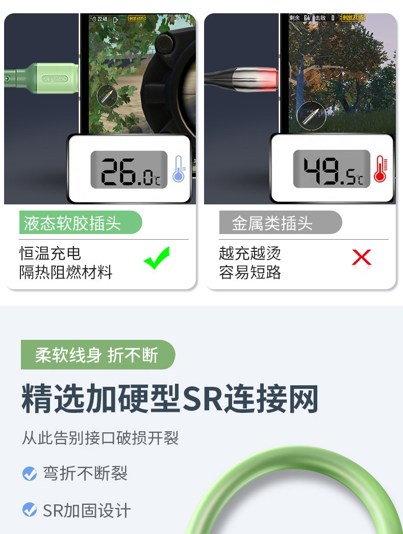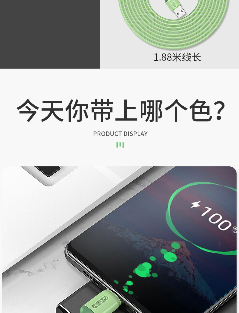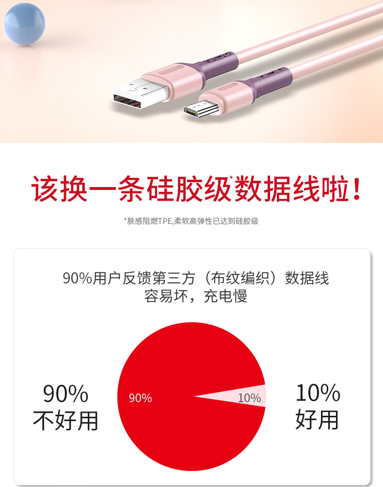 液态软胶升级版数据线,食品级液态软胶,液态软胶、2年换新、3件6.66折,支持3A快充,60分钟充满,高弹线材,使用寿命提高6倍,线材柔软,抢到就是赚到~~