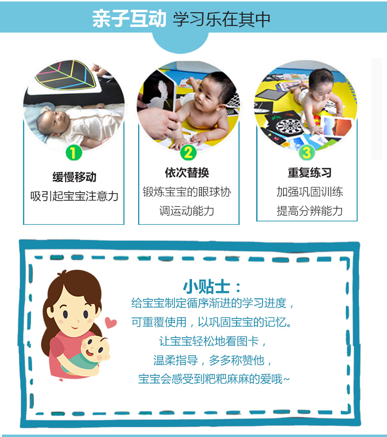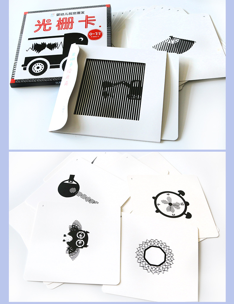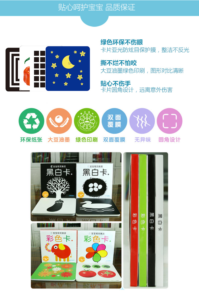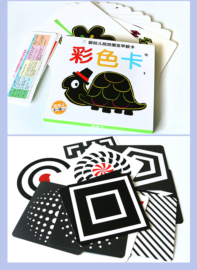 【超值4盒装】新款加大卡片,不透光不反光,专为0-3岁宝宝开发研究的视觉卡,进行视觉激发,有效预防近视。绘画形象生动,海量贴纸,内容丰富多样,早觉益智,妈妈的好选择!