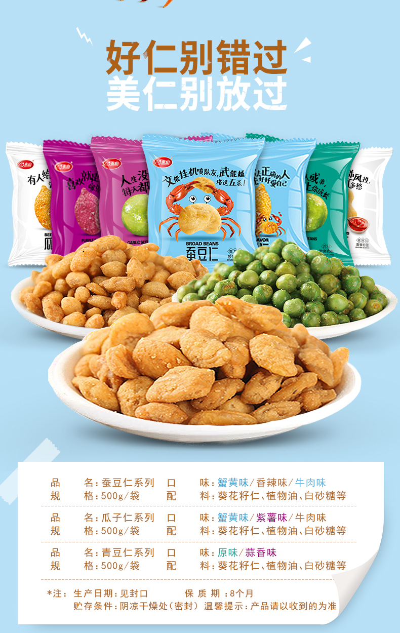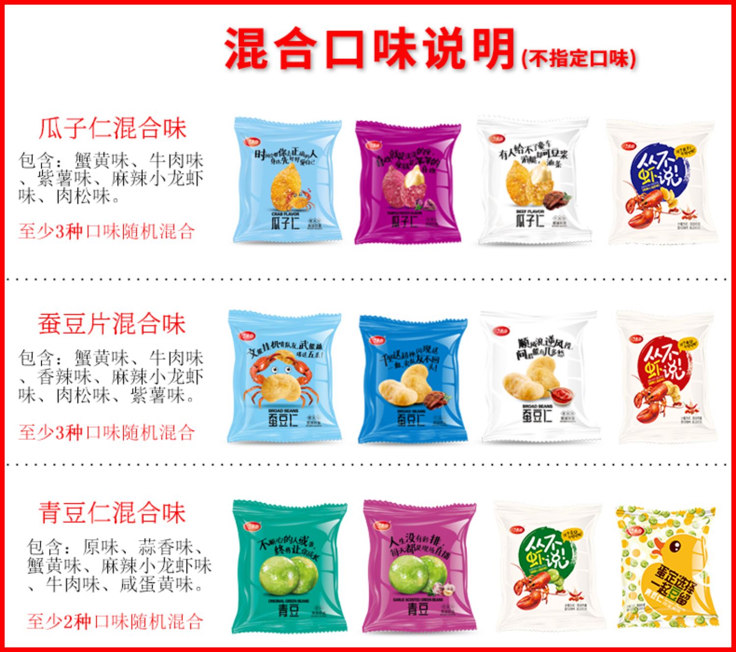 【超值第二份半价,多种口味40包组合装】蟹黄蚕豆青豆瓜子仁即食小零食,优选原材料,好吃又不腻,超多种口味可选。看剧来一袋,办公室小零食,独立包装好吃又方便!鲜美好吃停不下来!速抢~