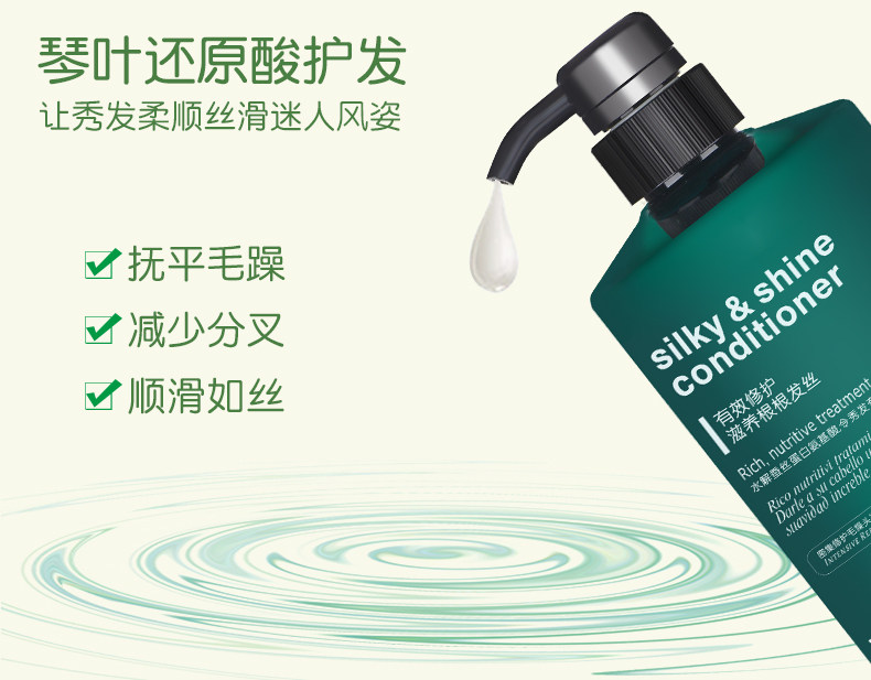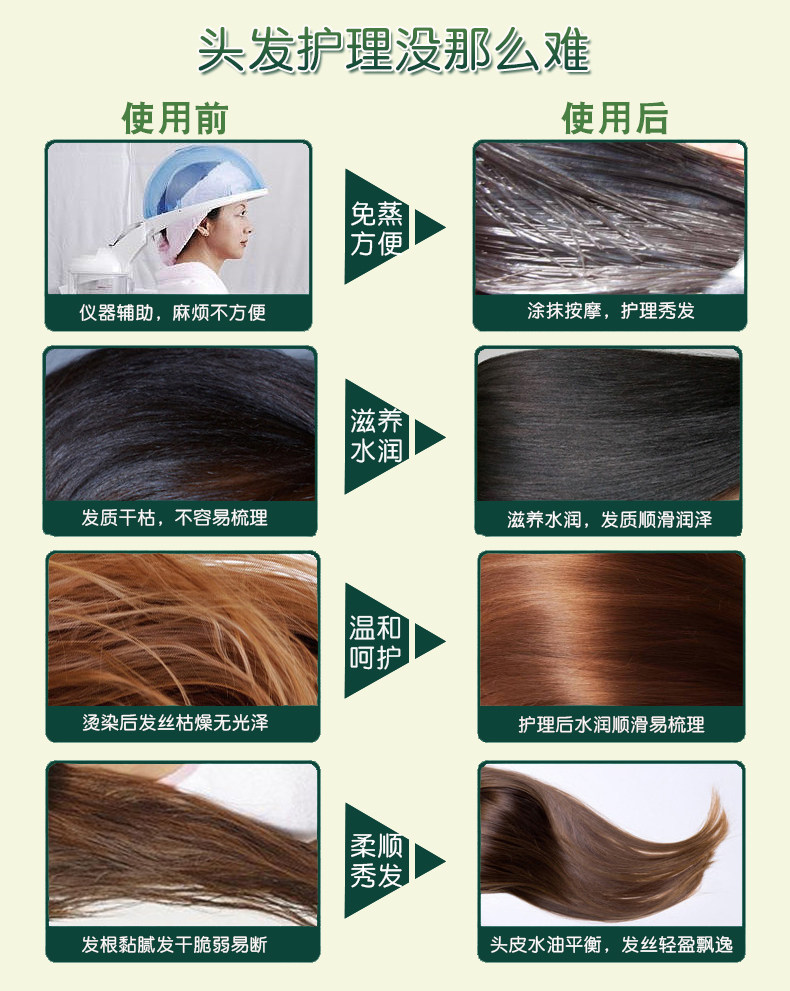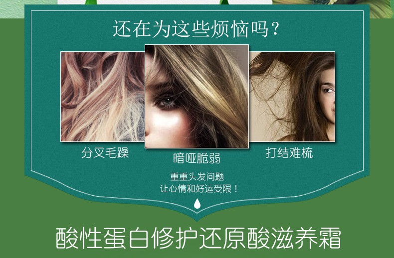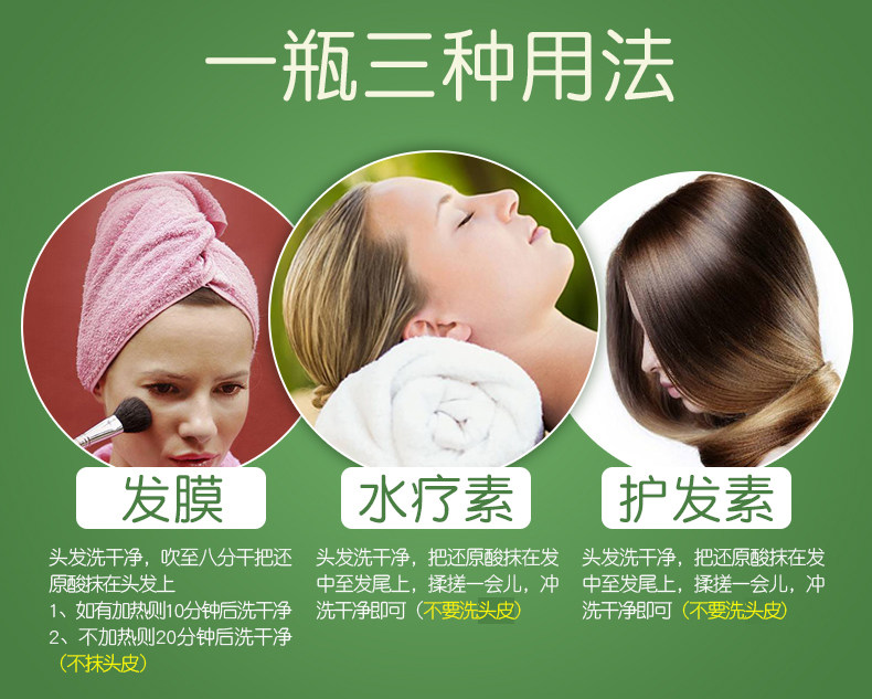 含氨基酸养护,甘油保湿,精基酸隔离,三大护发成分,可当护发素,可做水疗素,可做发膜,修护干枯,抚平毛躁柔顺亮泽,补水锁水,滋养发丝,让秀发散发光泽秀丽!