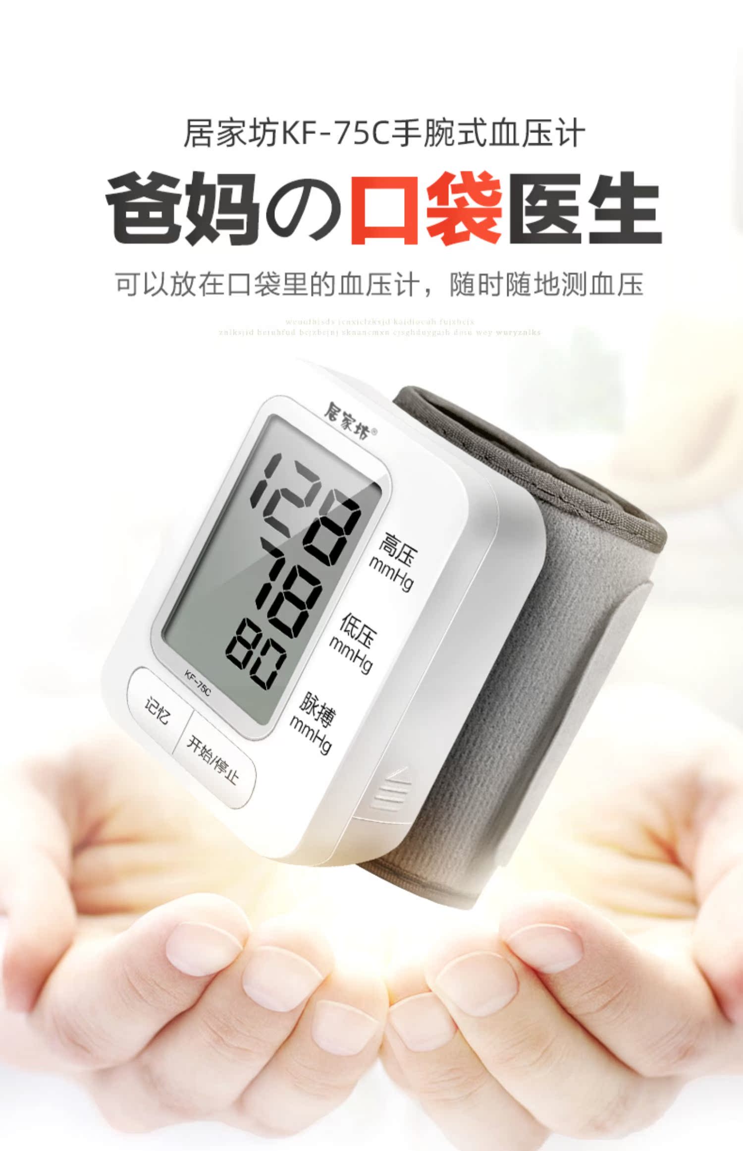 电子测家用压全自动医用高精准老人手腕式量血压计测量表仪器腕式,药店同款,免脱衣超方便,血压心率**测量,一看就会!