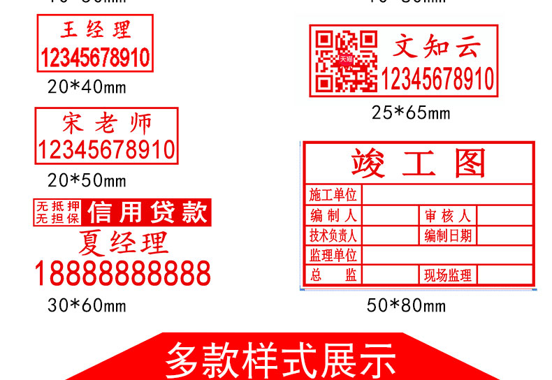 【三个儿童小印章!买就送三瓶印油!免费设计!】长方形章,名字、电话、二维码、快递验视、教师评语等盖章制作!光敏印章,印迹清晰,颜色鲜艳,新印章根据客户要求刻好字,可以反复使用!
