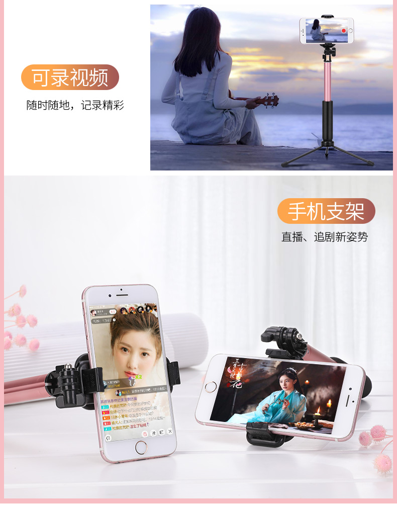 直播户外必备神器啊,可拆卸式蓝牙遥控,小巧mini,随身携带超方便,360°随心旋转,拍出不同角度,合照更轻松,轻松拍出大长腿【赠运费险】