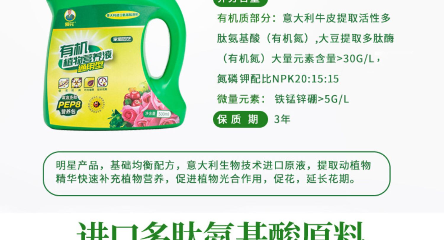 一瓶用一年,养花必备营养液,高倍浓缩型,根叶双吸收,全面养分,不烧苗,不烧根,施用方便。