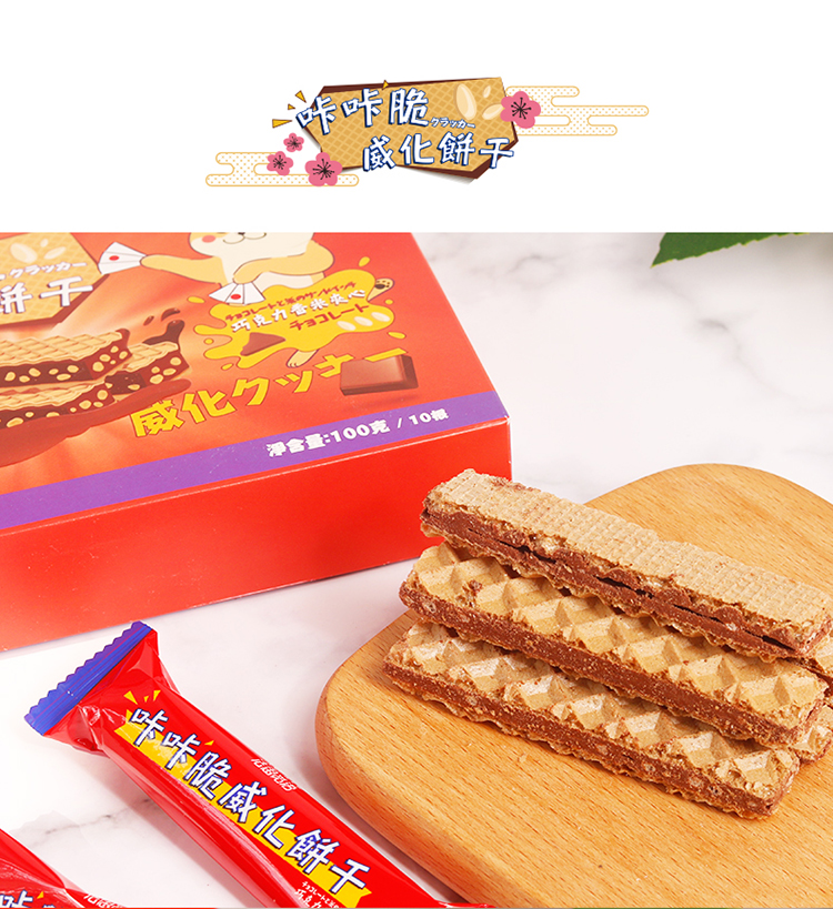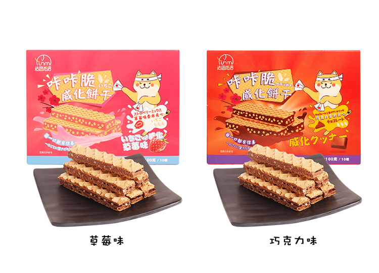 【第2盒1元,第3盒0元】印尼风味咔咔脆威化饼干,巧克力和草莓香米夹心,层次分明,口感酥脆
