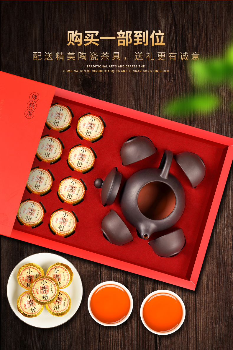 【高档年货礼盒】【买就送1壶4杯】年货精品好茶!青柑普洱茶+名器景德窑紫砂壶五件套!采用天马柑橘,云南宫廷普洱茶。匠工制作。送亲朋好友倍有面子!可免费试喝,不满意包退。【赠运费险】