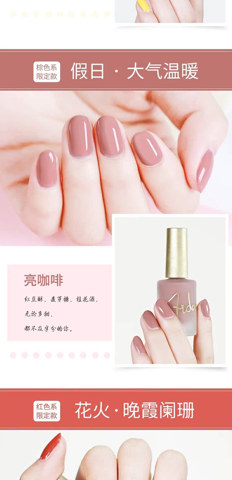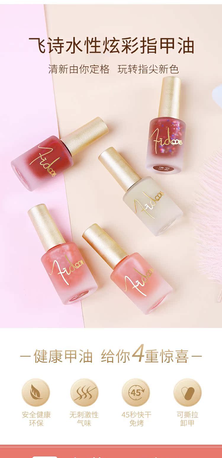 【网红爆款】拍两件更划算,第2瓶0元,送卸甲巾!飞诗网红指甲油,快干亮油/光泽持久底油/哑光磨砂顶油20色可选。全无毒免烤不含荧光剂,无甲苯不伤手,色彩鲜亮饱满,温和配方无刺激,多种仙女色系可选!