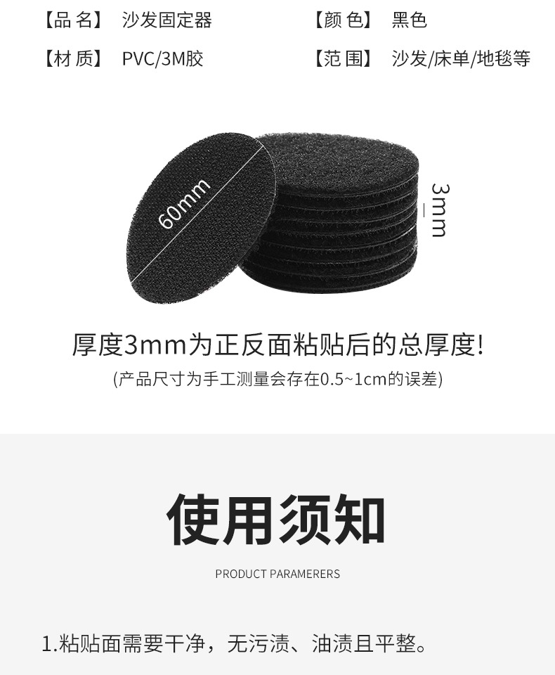 【天猫正品】床单沙发罩被褥桌布防滑固定器,一款不带针的固定器,不再担心危害家人,黏贴无残留,简易方便,解决我们生活中的困扰!防掉带背胶子母扣双面粘贴扣固定器,两面有胶,一件=毛面+刺面