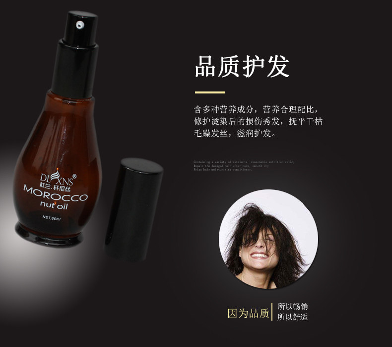 【摩洛哥】免洗护发,修护毛躁,滋润亮泽,柔顺光泽,抚平毛躁,拒绝干枯,有效解决头发干、分叉,油腻等问题。你负责漂亮,我负责养护!