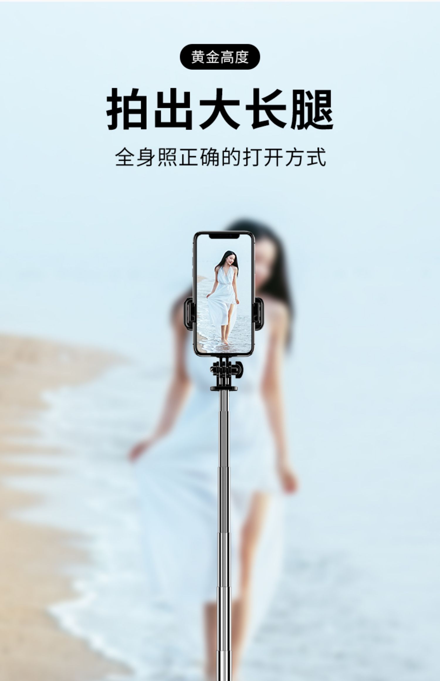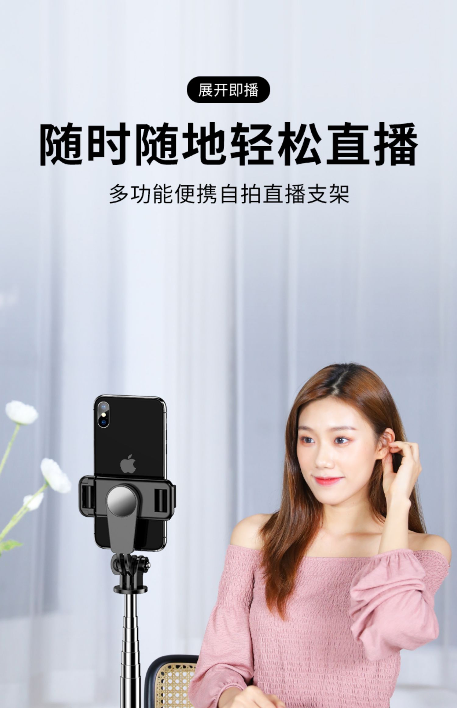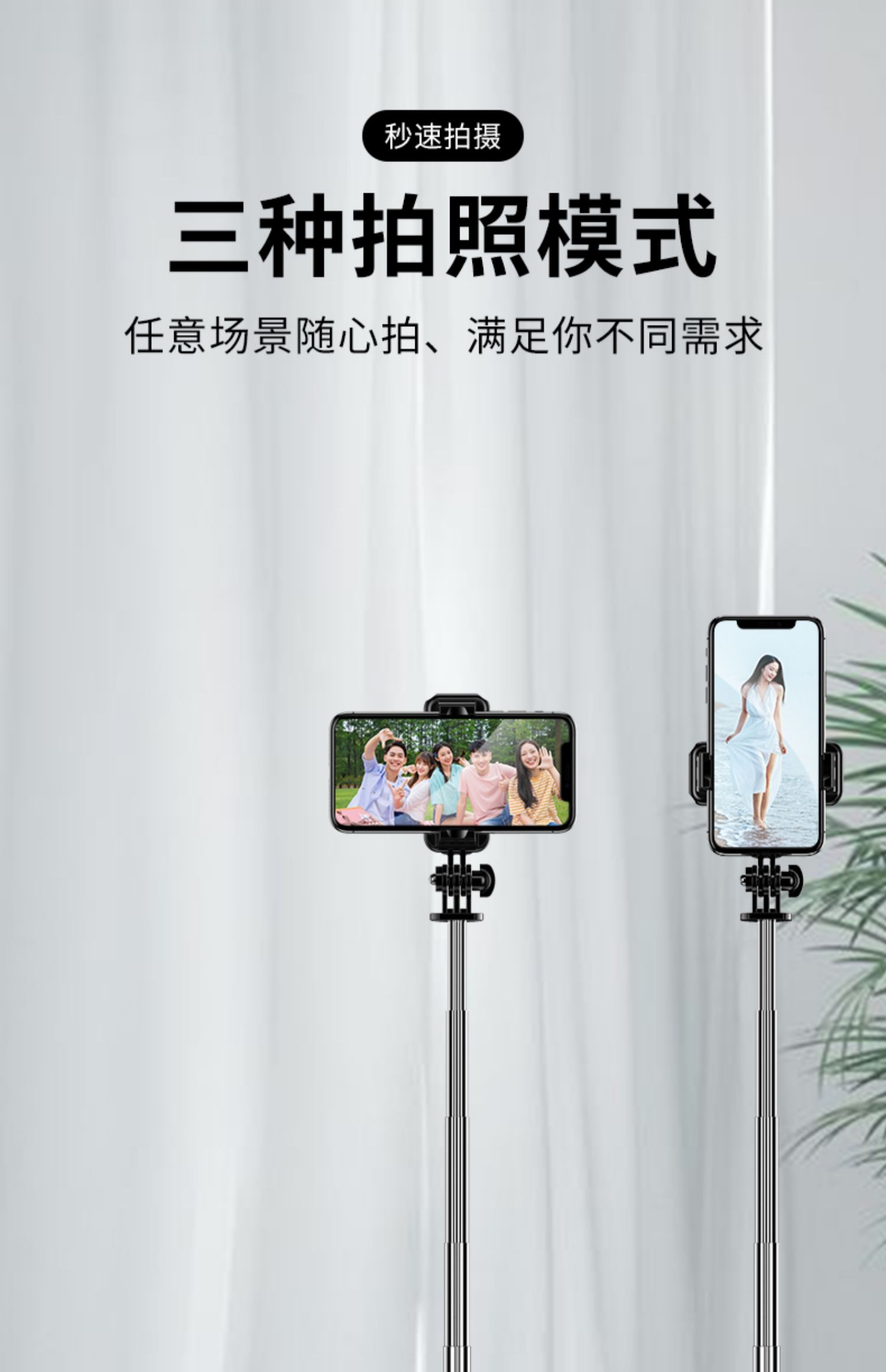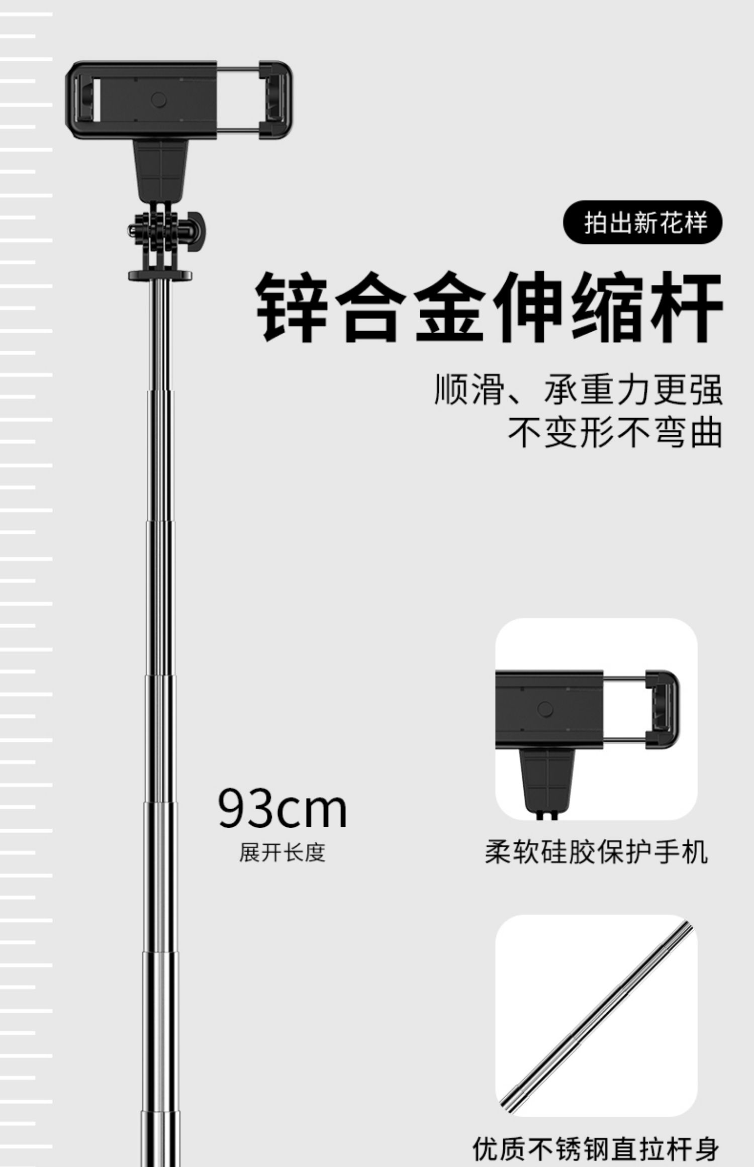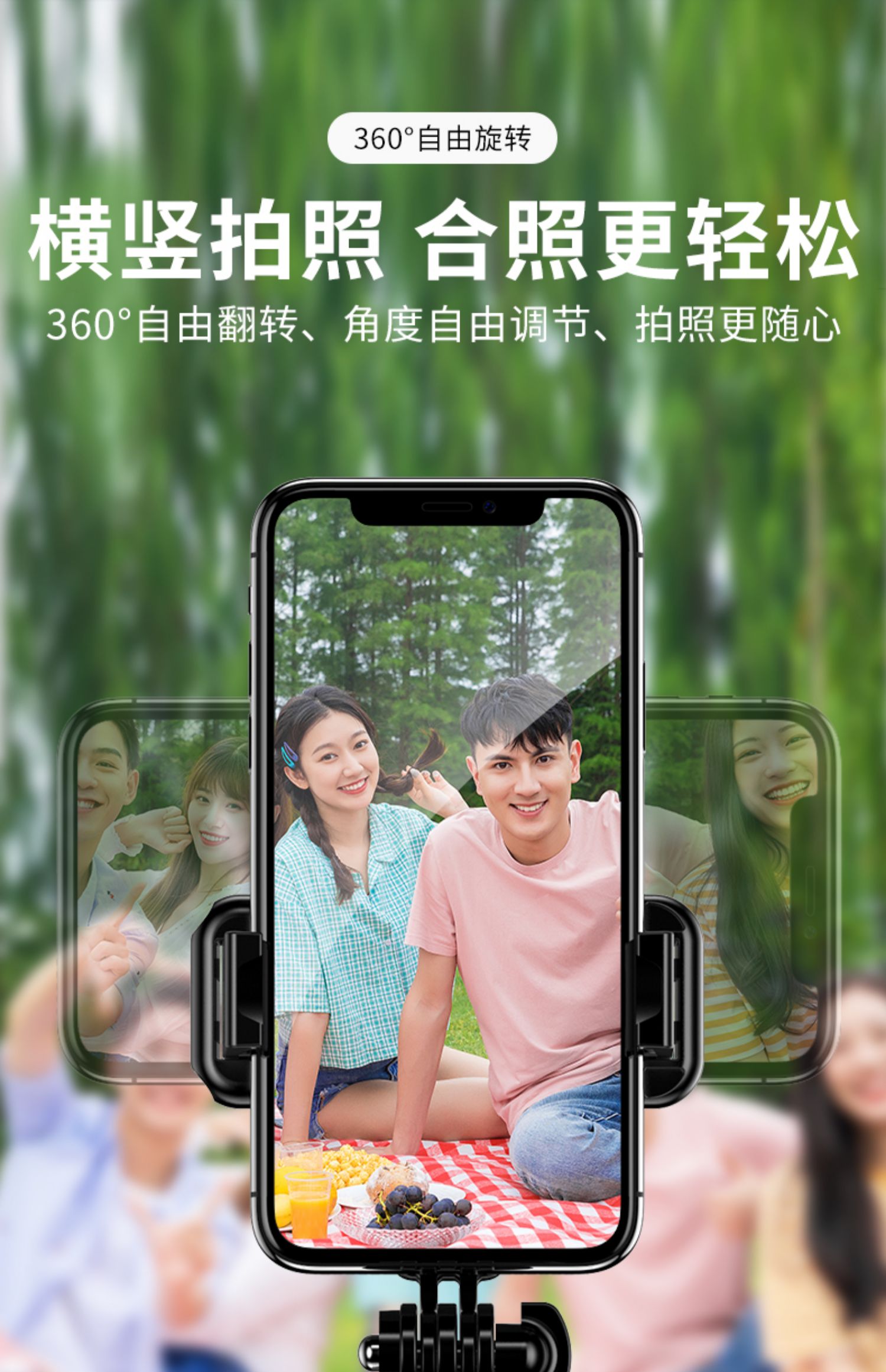 自拍神器旅游自拍杆,直拉免旋转,简单易用,360度旋转夹头,手机直播拍照支架三脚架,赠运费险