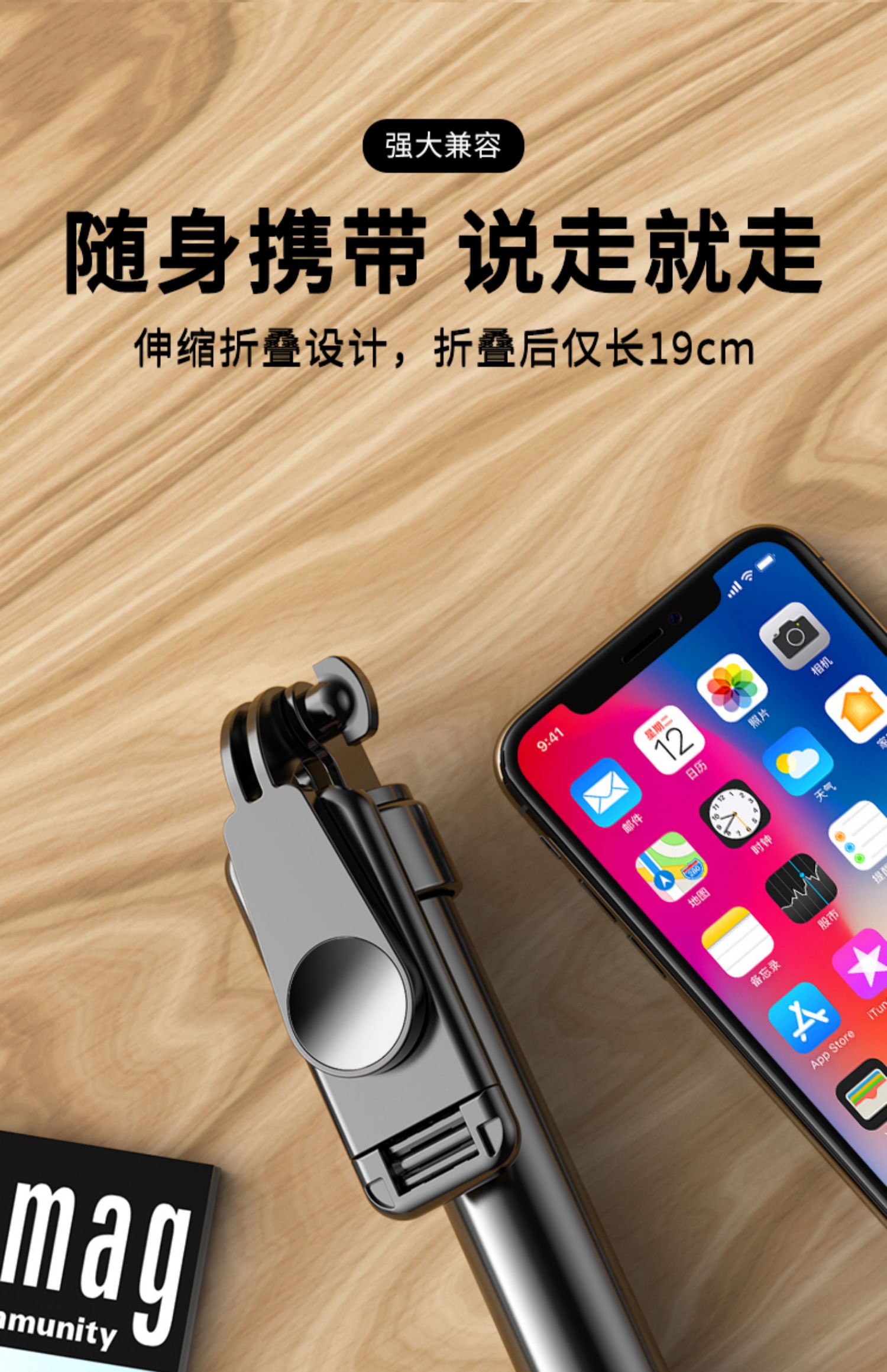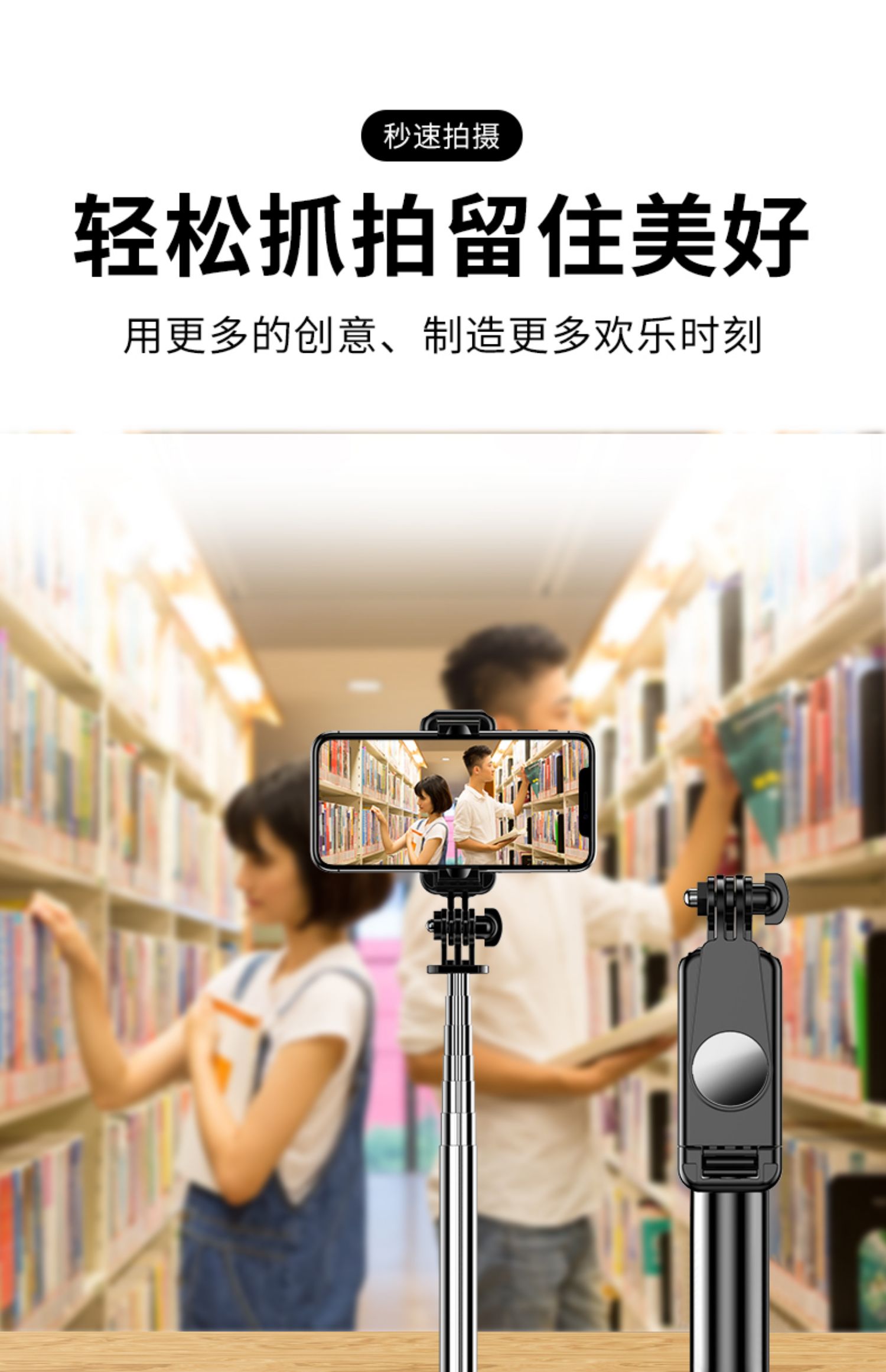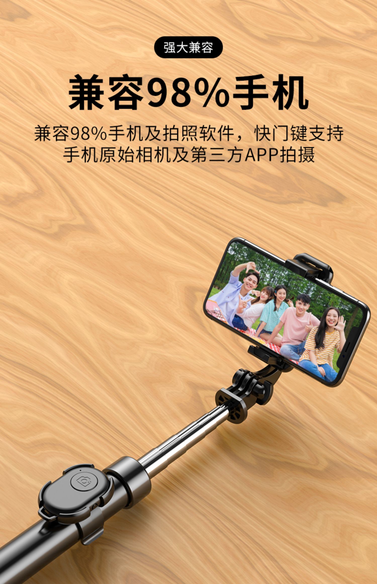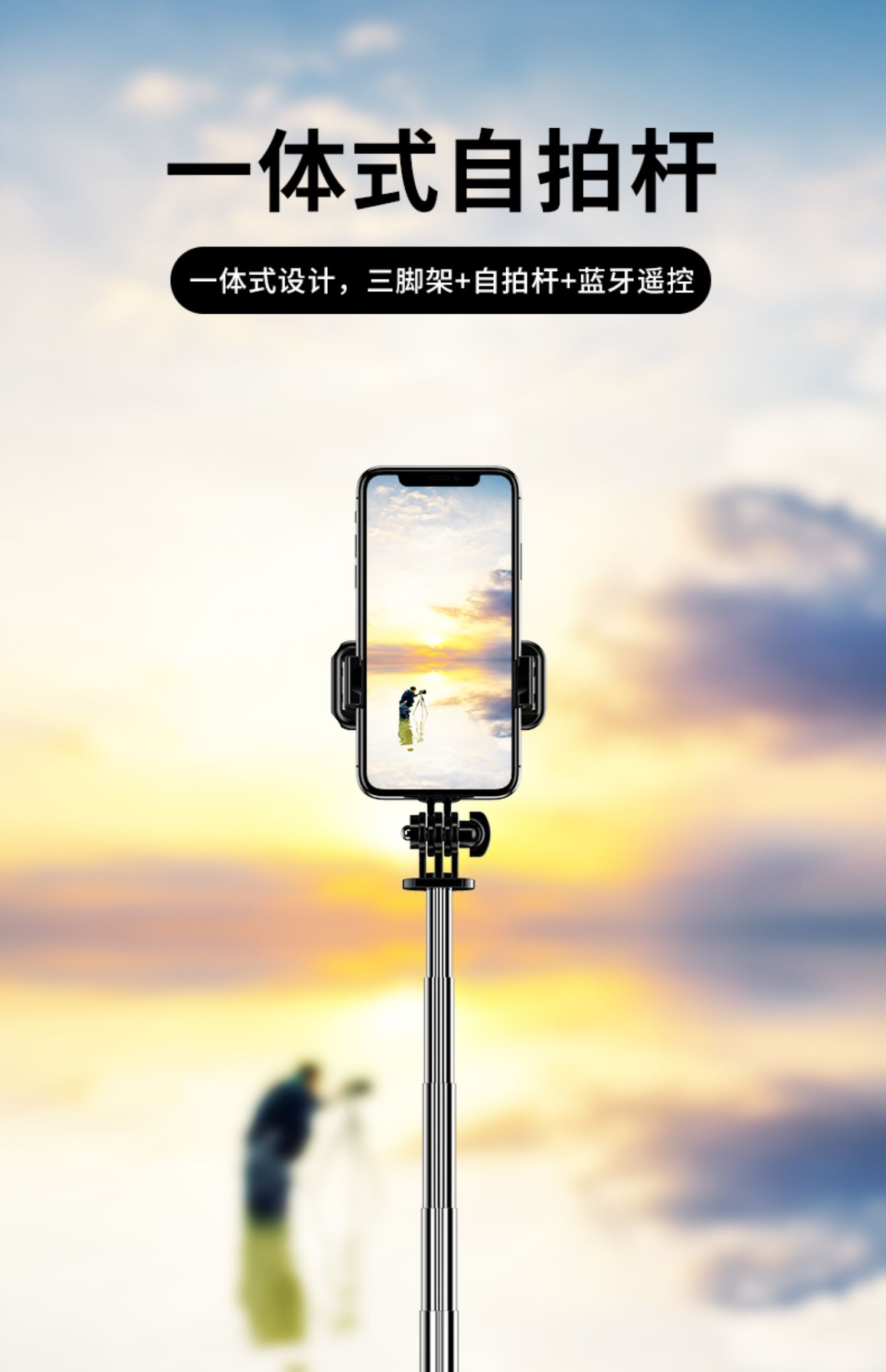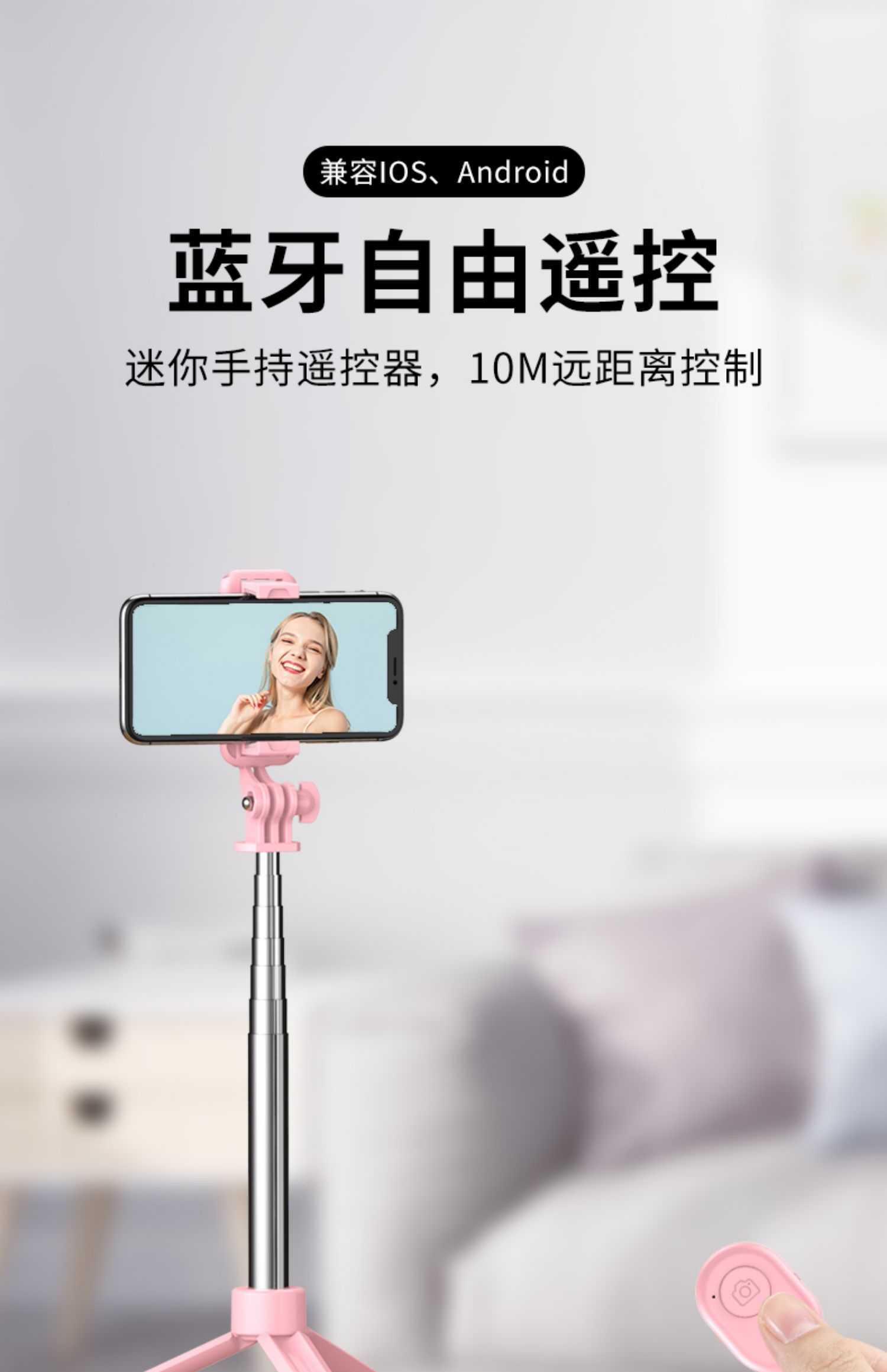 自拍神器旅游自拍杆,直拉免旋转,简单易用,360度旋转夹头,手机直播拍照支架三脚架,赠运费险