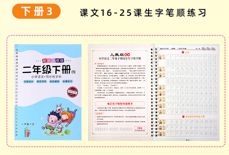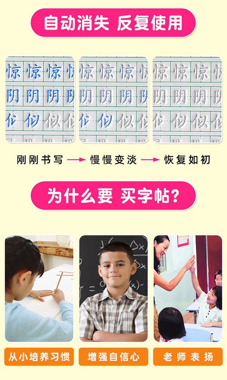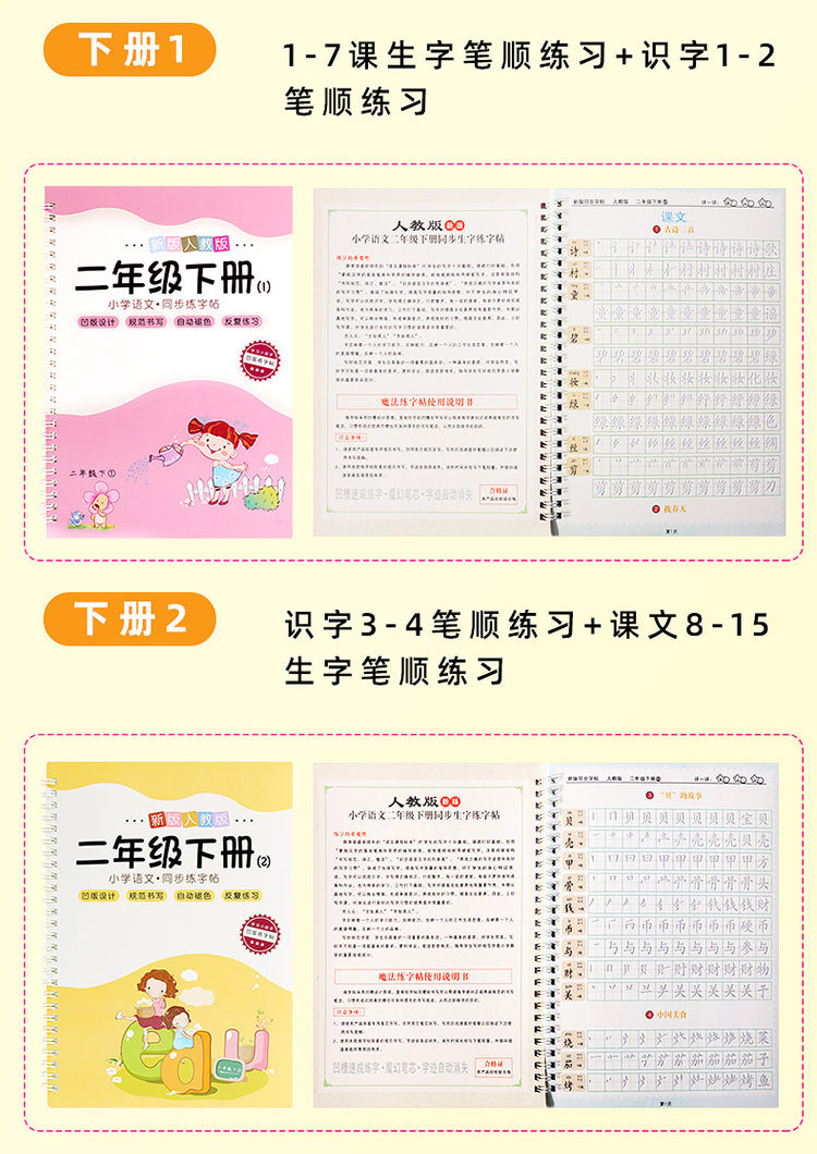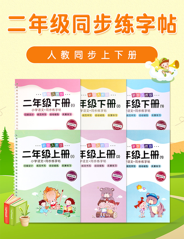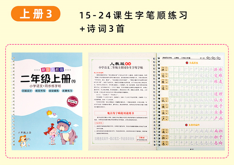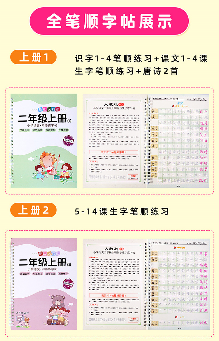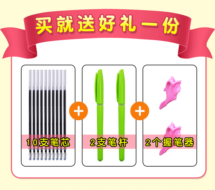 【赠2笔杆+2握笔器+10笔芯】加厚纸张,教材同步练习,拼音、数字、笔画、偏旁描写,全方面培养,自动褪色,可反复书写!【赠运费险】