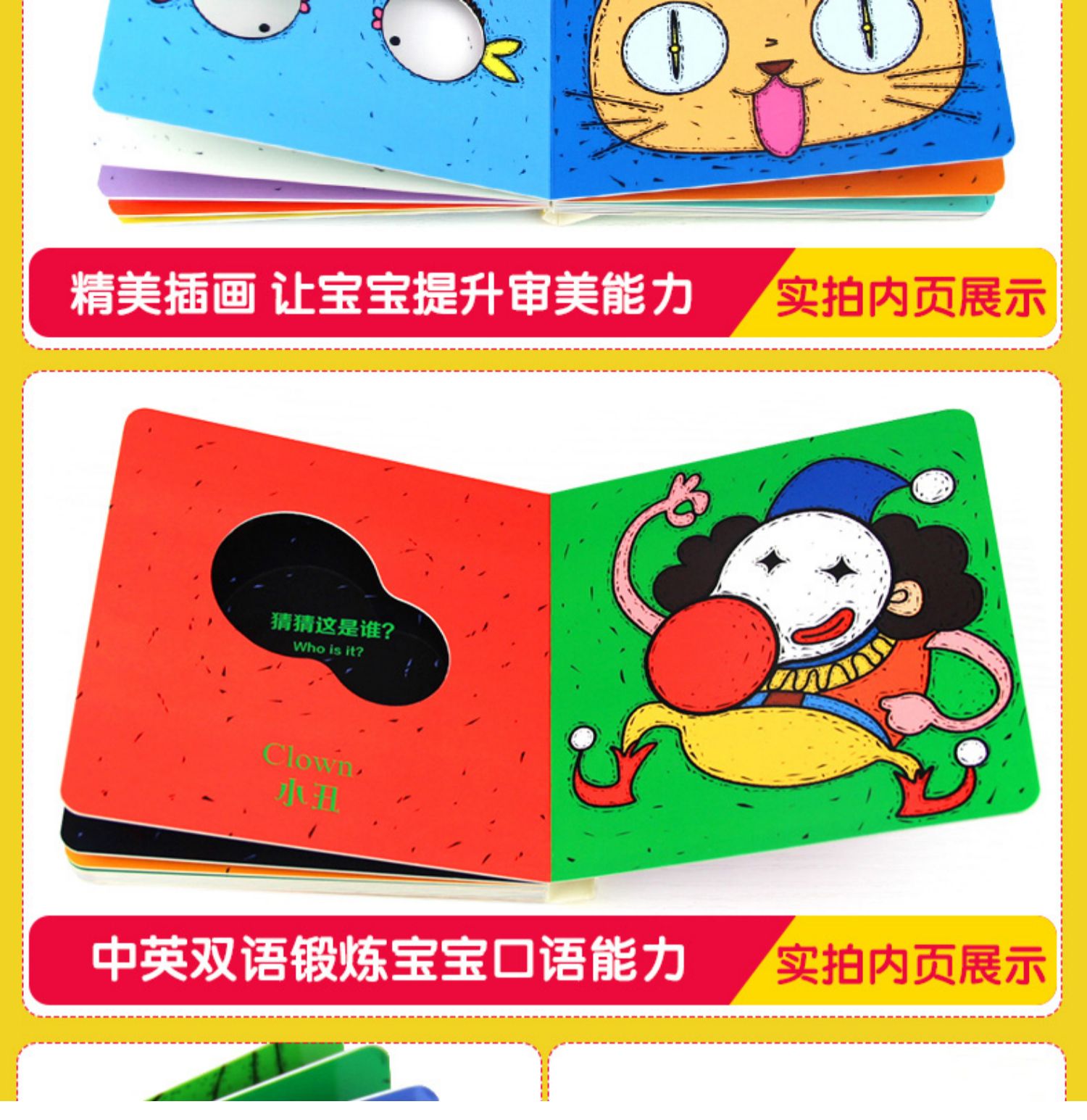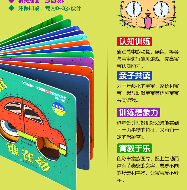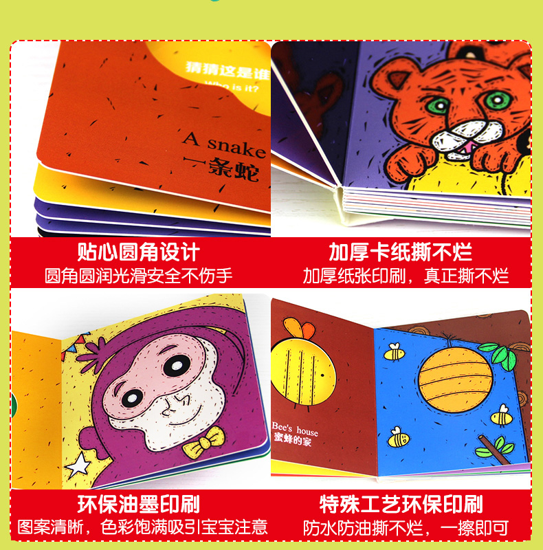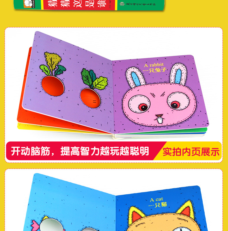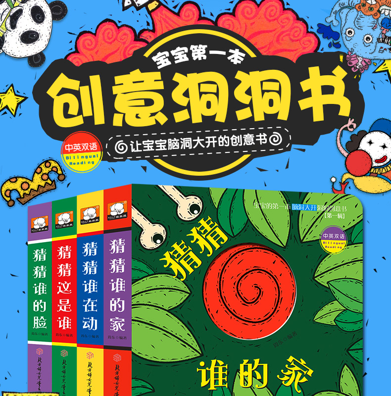 【超值秒杀】儿童早教启蒙认知书,猜猜我是谁绘本全4册,偷偷看里面奇妙洞洞书,中英双语版。圆角设计不伤手,加厚纸板撕不烂。0-8岁幼儿必备益智游戏书,开发宝宝大脑潜能,宝妈必备睡前亲子故事书。