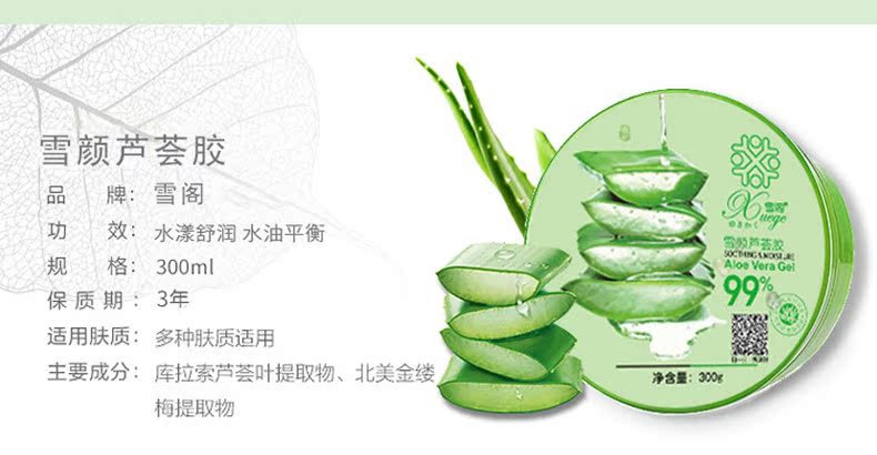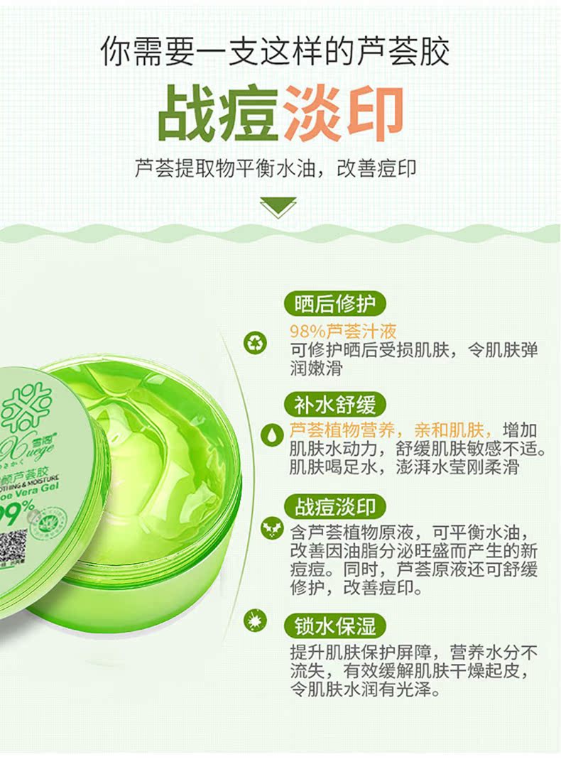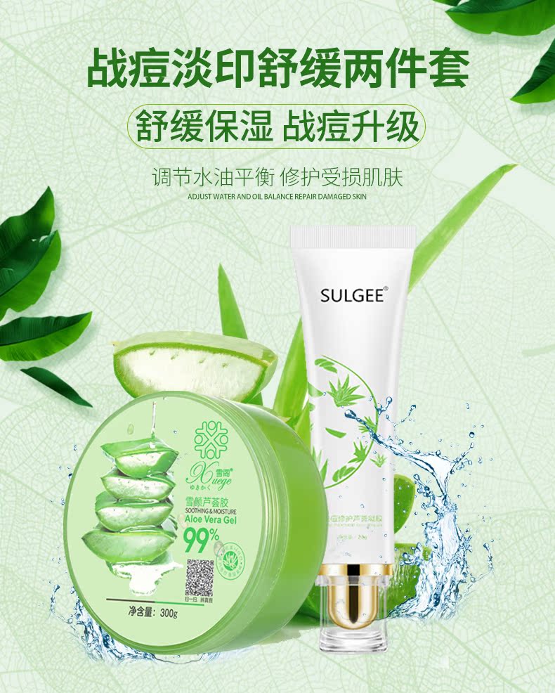 雪阁芦荟凝胶套装补水保湿祛痘去痘印面霜