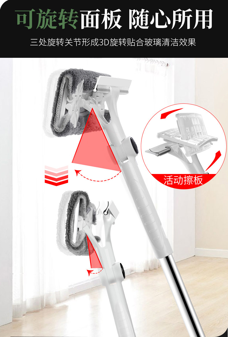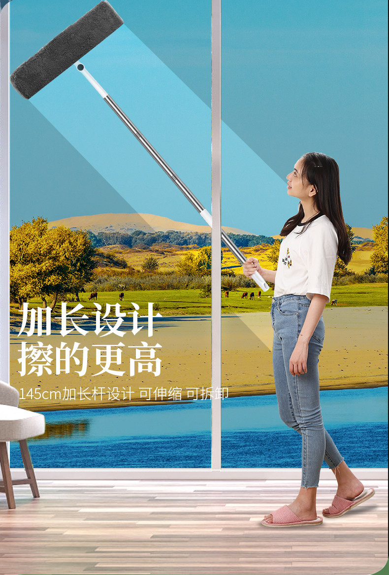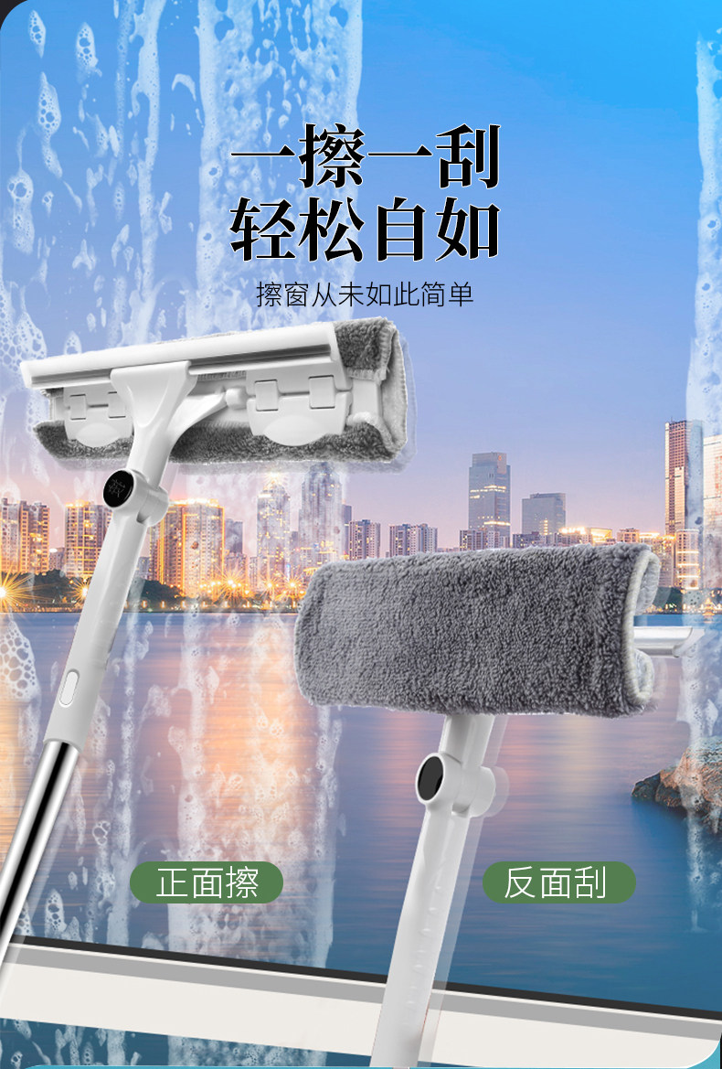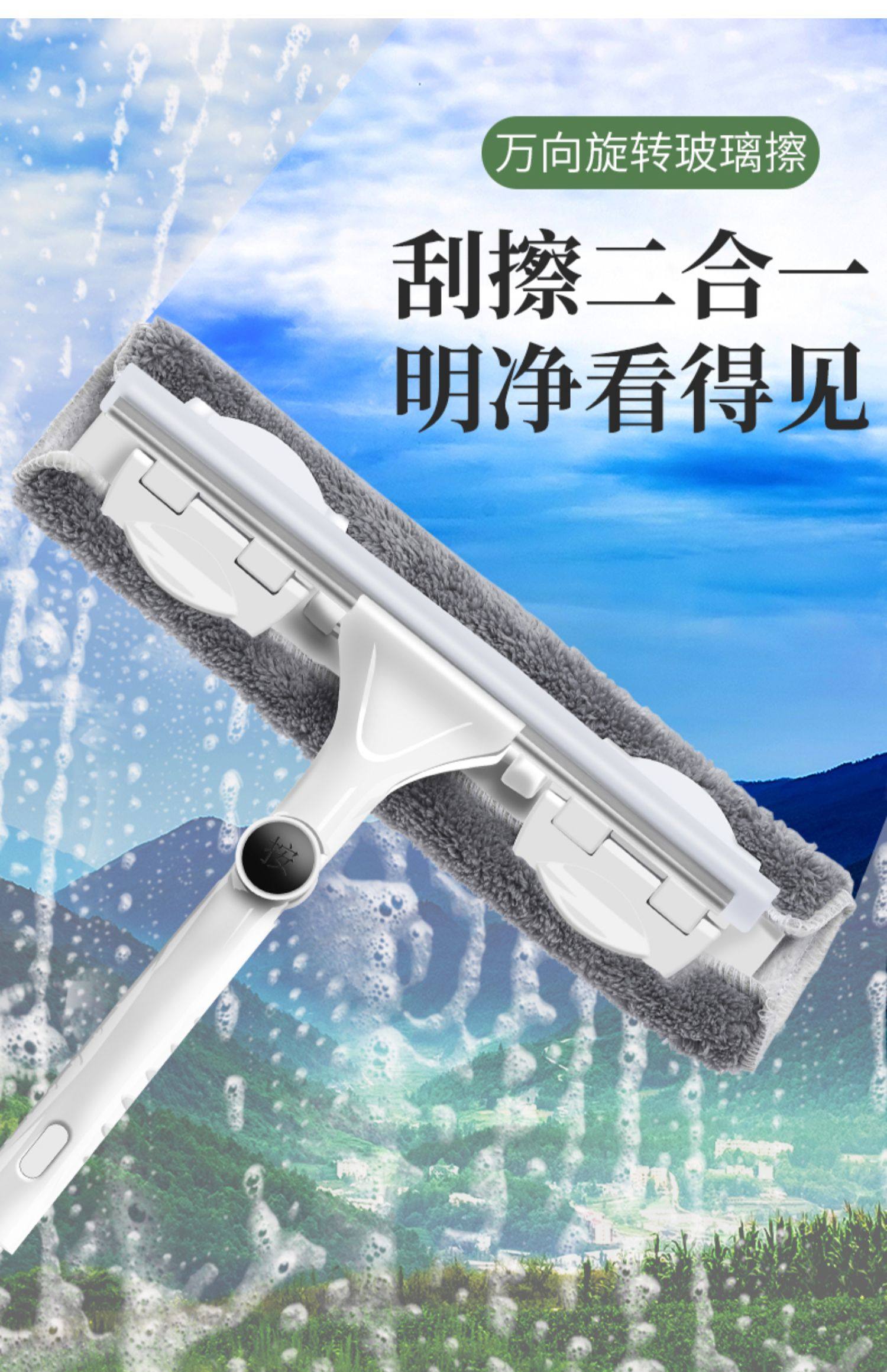 加长伸缩杆,万向旋转,擦窗更省力,刮擦合一,无死角清洁,ABS工程塑料,纤维拖布,一擦一刮,焕然一新。【破损包赔】