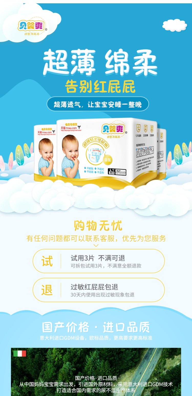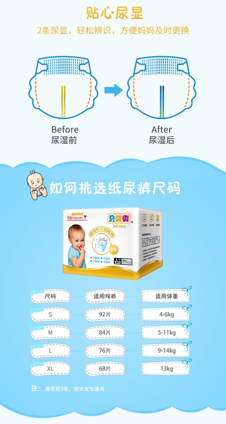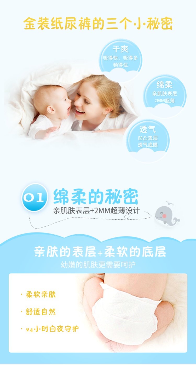【SMLXL四码任选】贝婴爽金装超薄透气婴儿纸尿裤,舒适亲肤,轻薄透气,超强吸收,超柔软给予宝宝轻柔呵护!防侧漏保护,真正做到始终干爽如一,远离红屁屁【赠运费险-红屁屁包退】